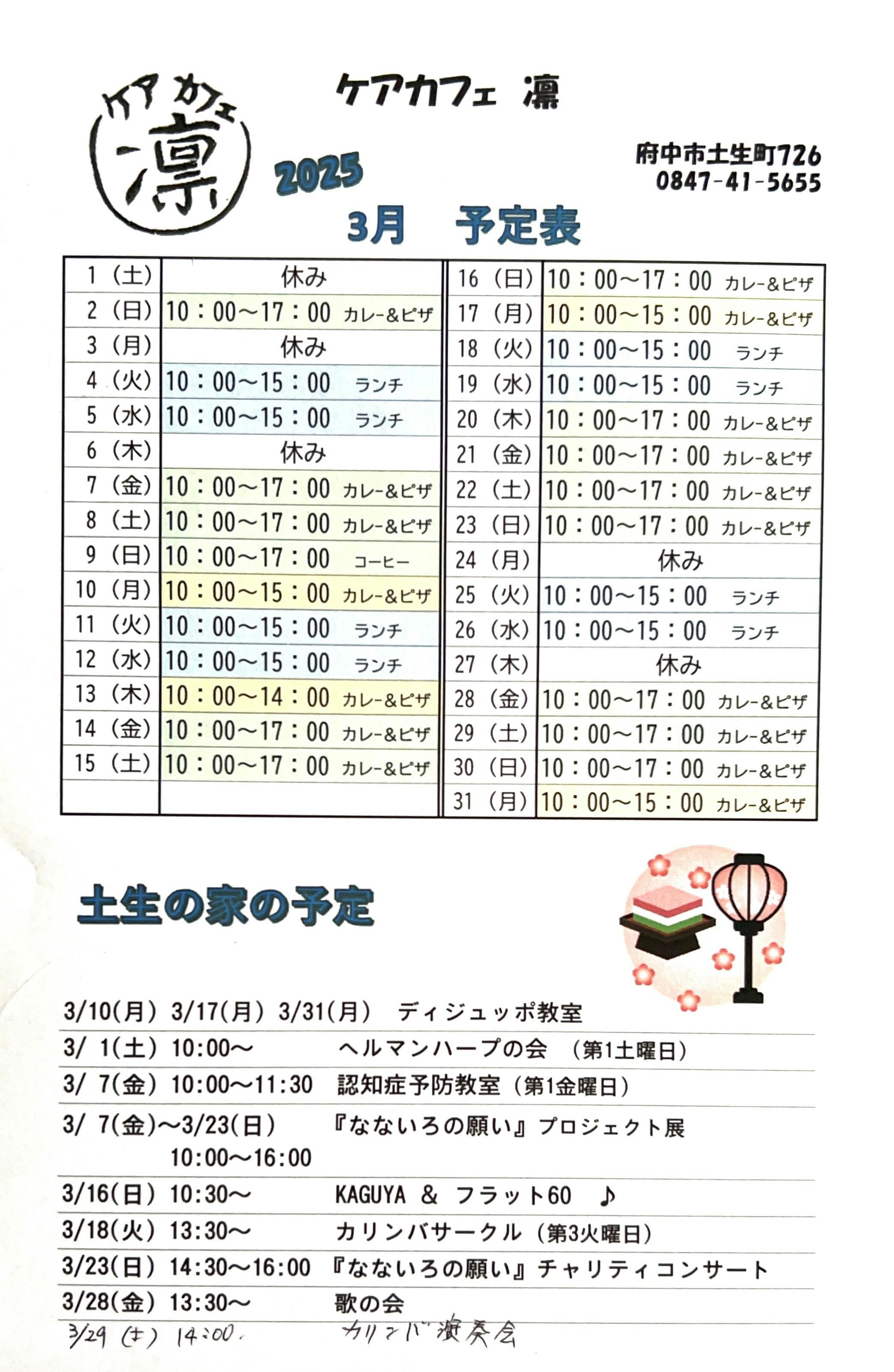 3月7日から、広島県府中市のケアカフェ凛さんで『なないろの願い』プロジェクトの締めくくりとなる展覧会&チャリティコンサートを開催させていただきます。