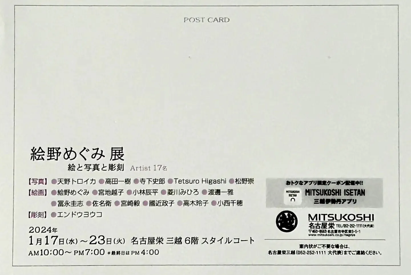 を開催し、日本各地から世界でも活躍している写真家やプロの画家、イラストレーター、彫刻家を含め17名の作家に展示してもらい多くの方に来て頂けました。