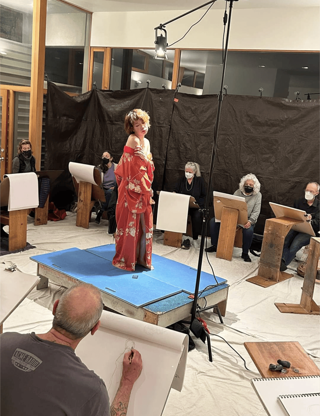 滞在中に2回ワークショップで美術モデルとして活動。