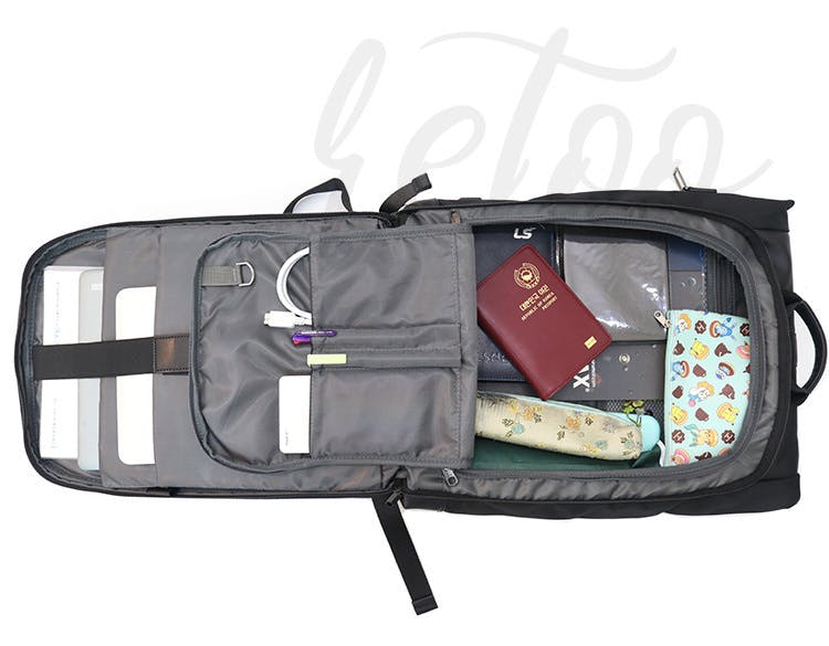 メインルームにはPCルーム内側のファスナーからもアクセスすることができ、スーツケースのように180度オープンの状態でパッキングが可能。