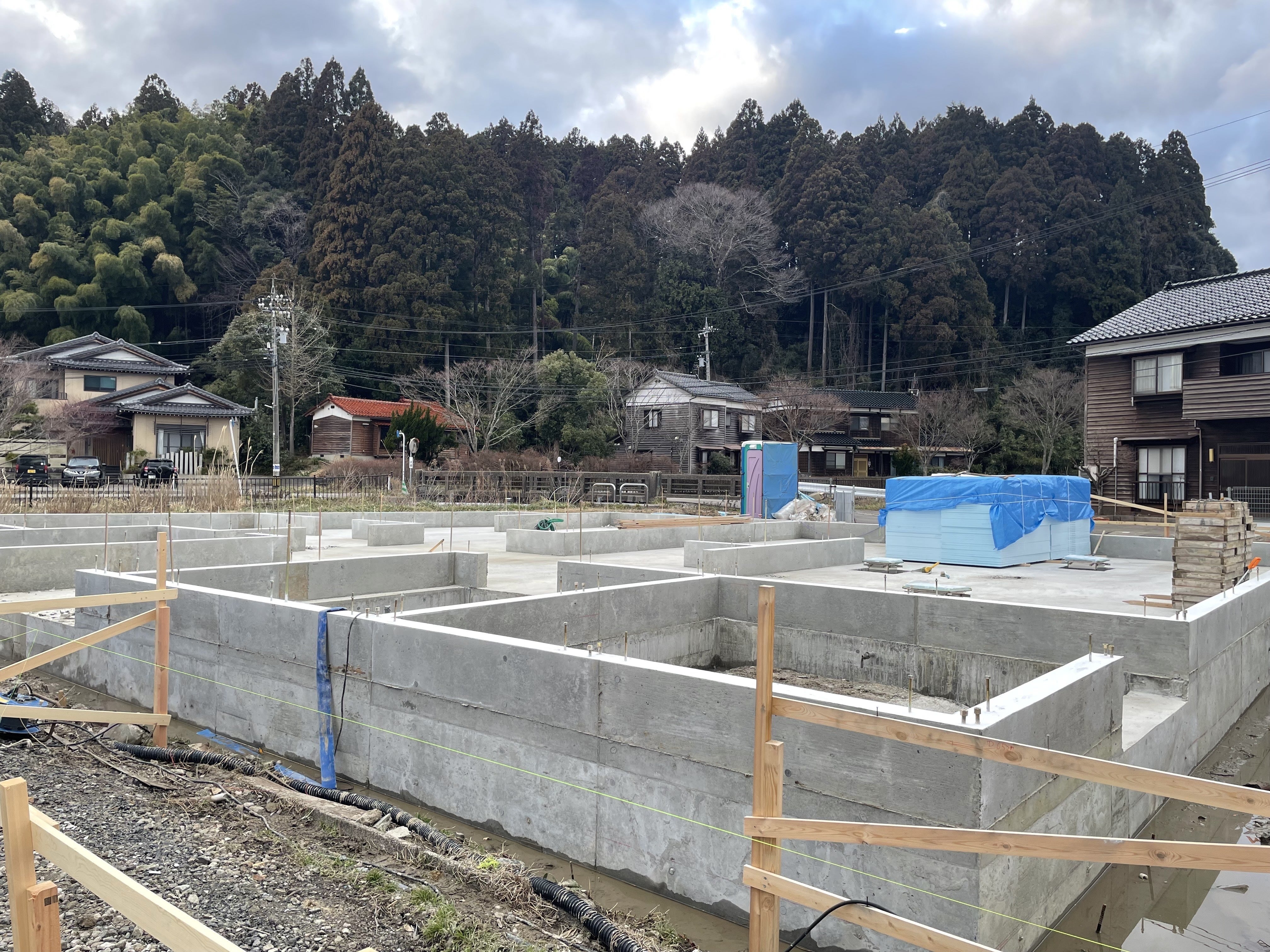 こんにちは。谷川醸造・谷川千穂です。長い基礎工事も終わり、今日から建て方工事が始まりました。朝からクレーン車と大勢の大工さん(総勢15名!)が来て、午前中は1階部分、午後からは2階部分の柱を建てていき、あっという間に建物の大枠が見えてきました。すごいスピードでビックリします。柱が建つと急に建物らしくなり、実感が湧きますね。本当に建つんだなー。というワクワクとドキドキ。それと同時に襲いかかる、プレッシャー。。。すごいスピードで建っていくので、今日は何だか疲れました。明日は上棟式。またご報告します!