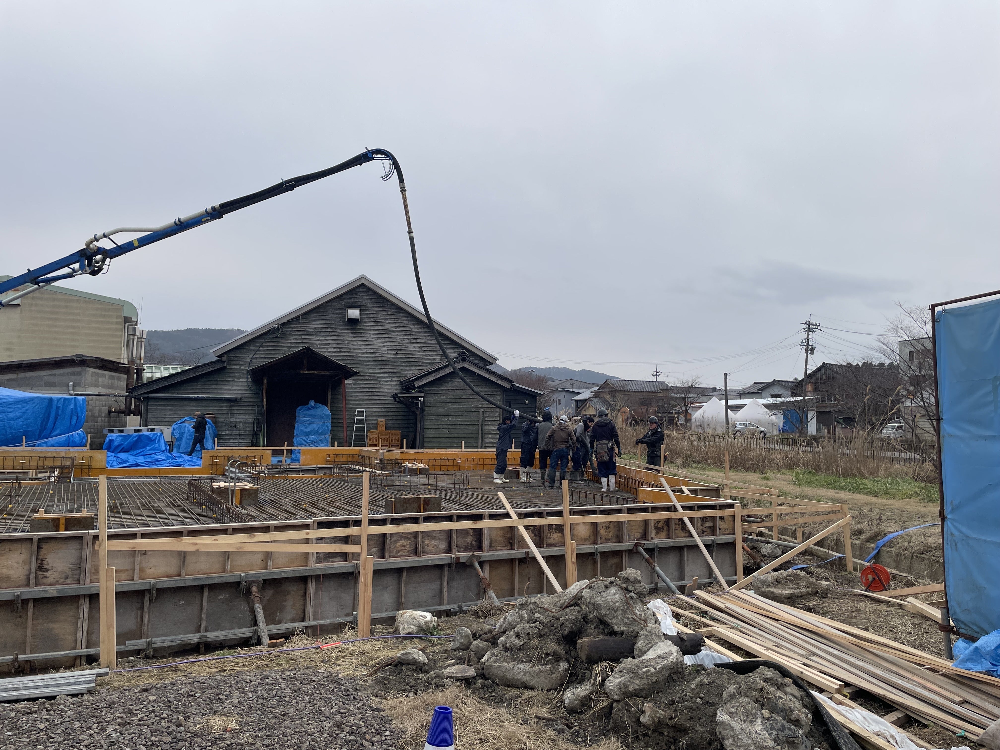 冬場なのでコンクリートが固まるまで少し時間がかかるようですが、しっかり養生すれば大丈夫とのこと。