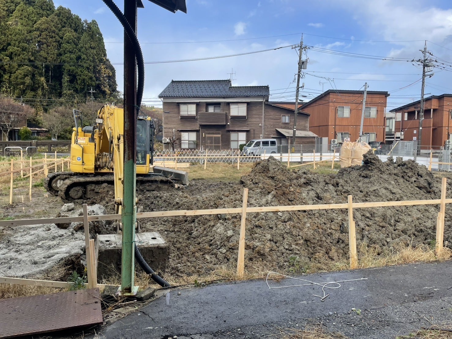 こんにちは。谷川醸造・谷川千穂です。いよいよ寒い季節に向かって、工事がスタートしました。まずは、地盤改良工事です。この辺一体は、超軟弱地盤なので地盤改良は必須です。幸い、工事がはじまってからあまり天気が悪くなることもなく、どうやら順調に進んでいるようです。今日見たら、いつの間にか小さな山がいくつもできていました。一体何をするのか、素人の私には全然見当もつきませんが、、、ここからどうなるのか楽しみです!またご報告します!
