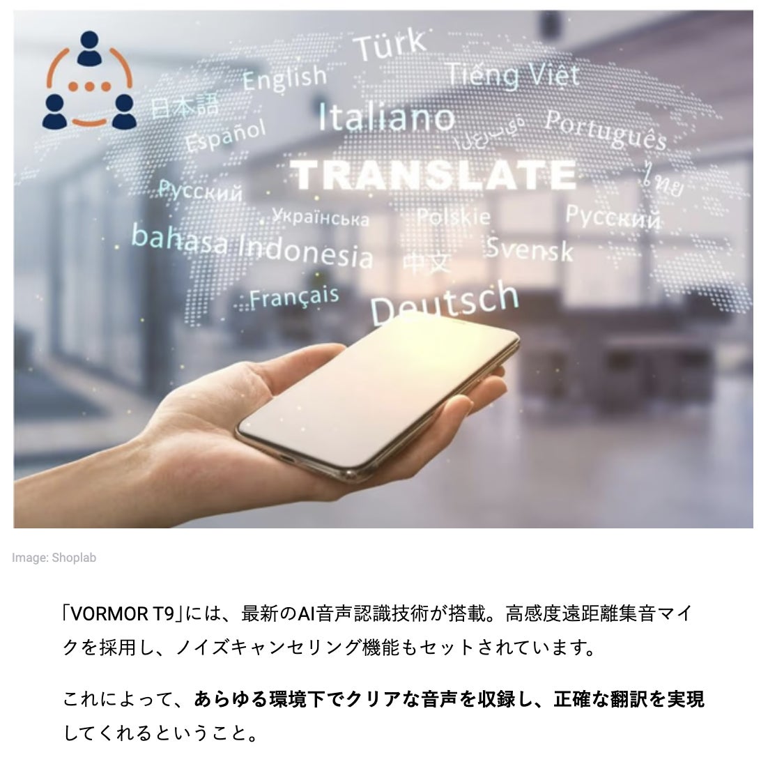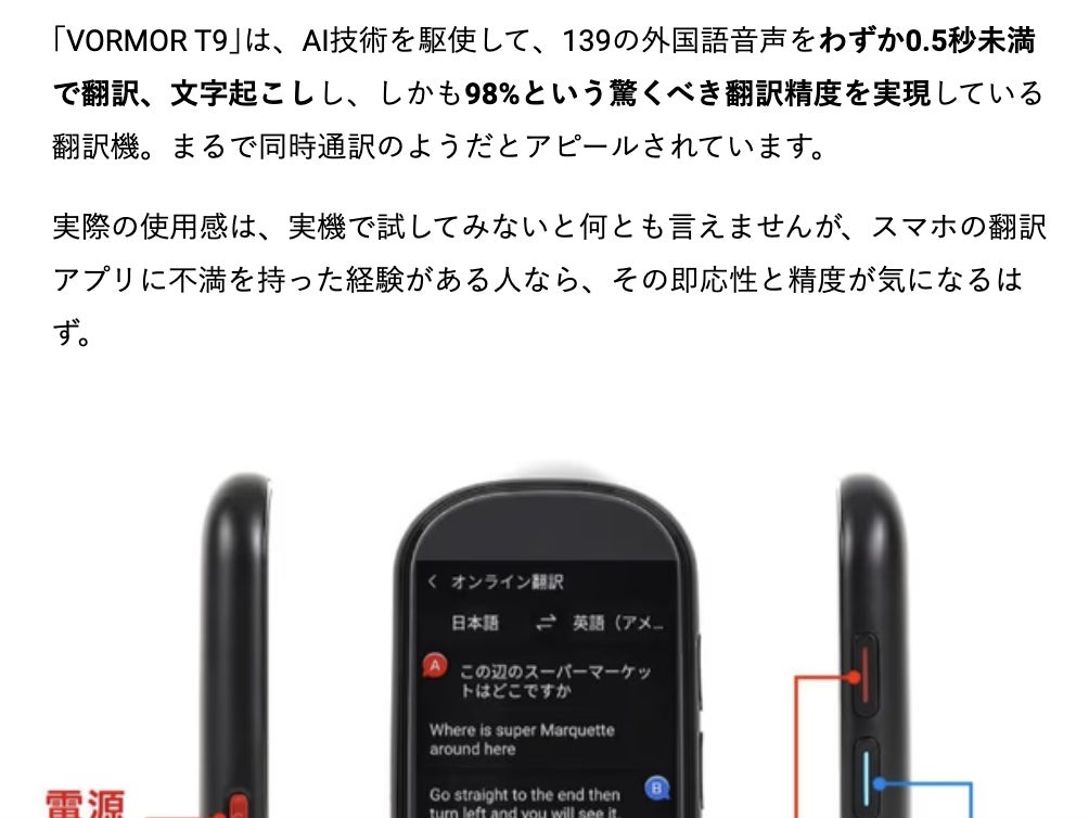 そして何と、、、本商品「VOROMOR翻訳機」が『GIZMODO』という最新テクノロジーやデジタル社会に関連するニュースを扱うテクノロジーメディアサイトに掲載されました!!!!