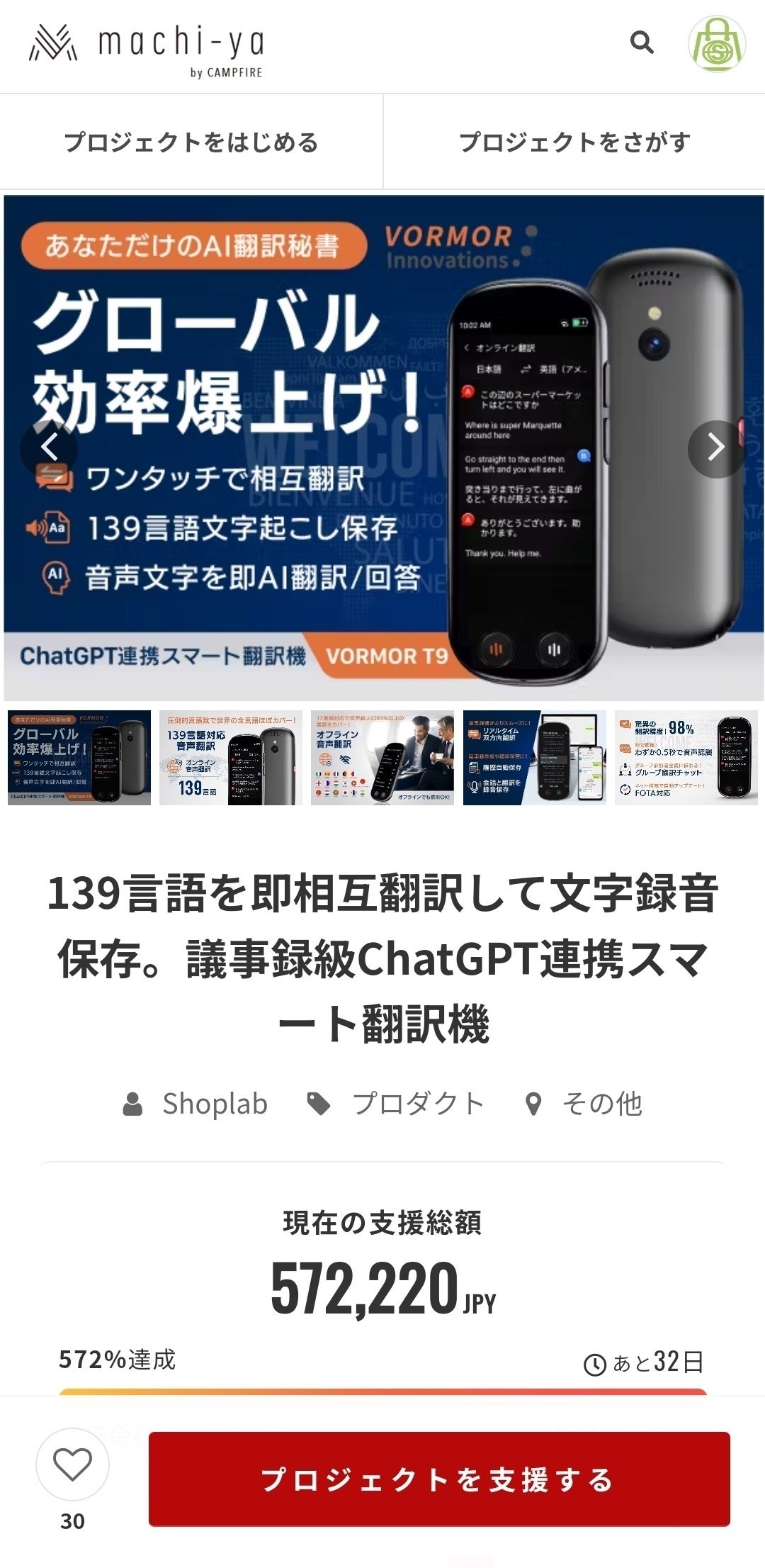 支援総額は、目標金額の572%を突破することができました!!!