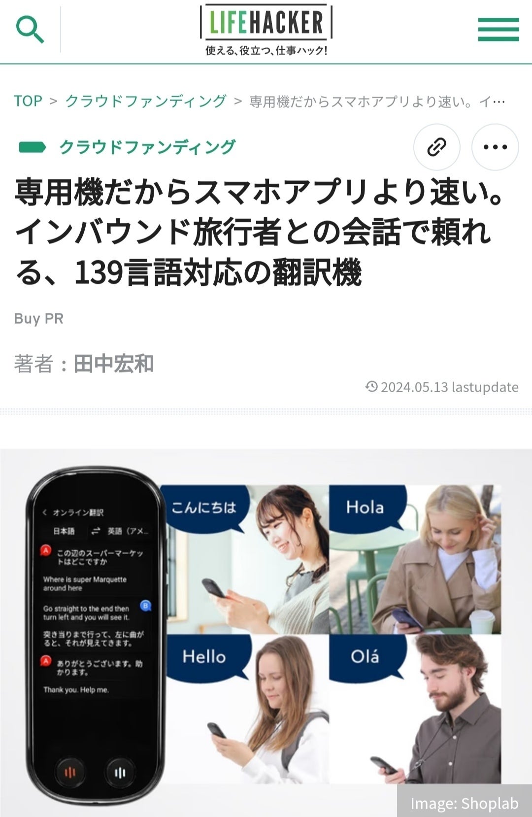 今回はなんと、、、本プロジェクトのリターン「VORMORスマート翻訳機」が『Lifehacker』という『効率化だけではない、「新しい生き方の選択肢」の提案』をコンセプトとする大人気Webメディアへ掲載されました!!