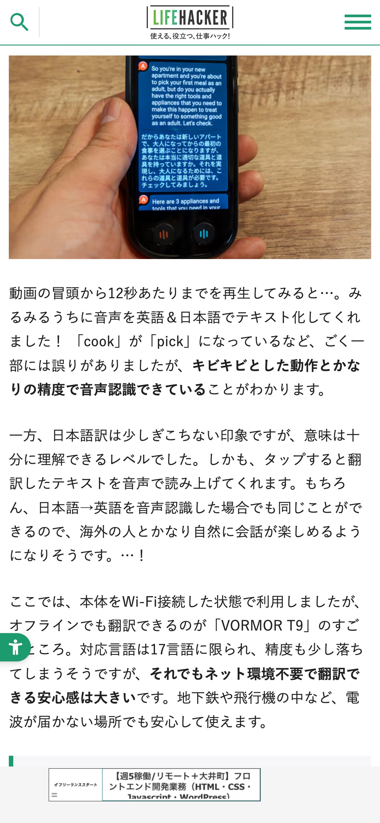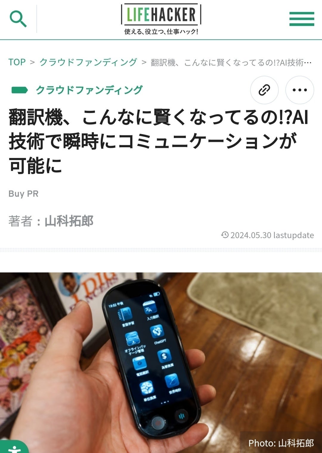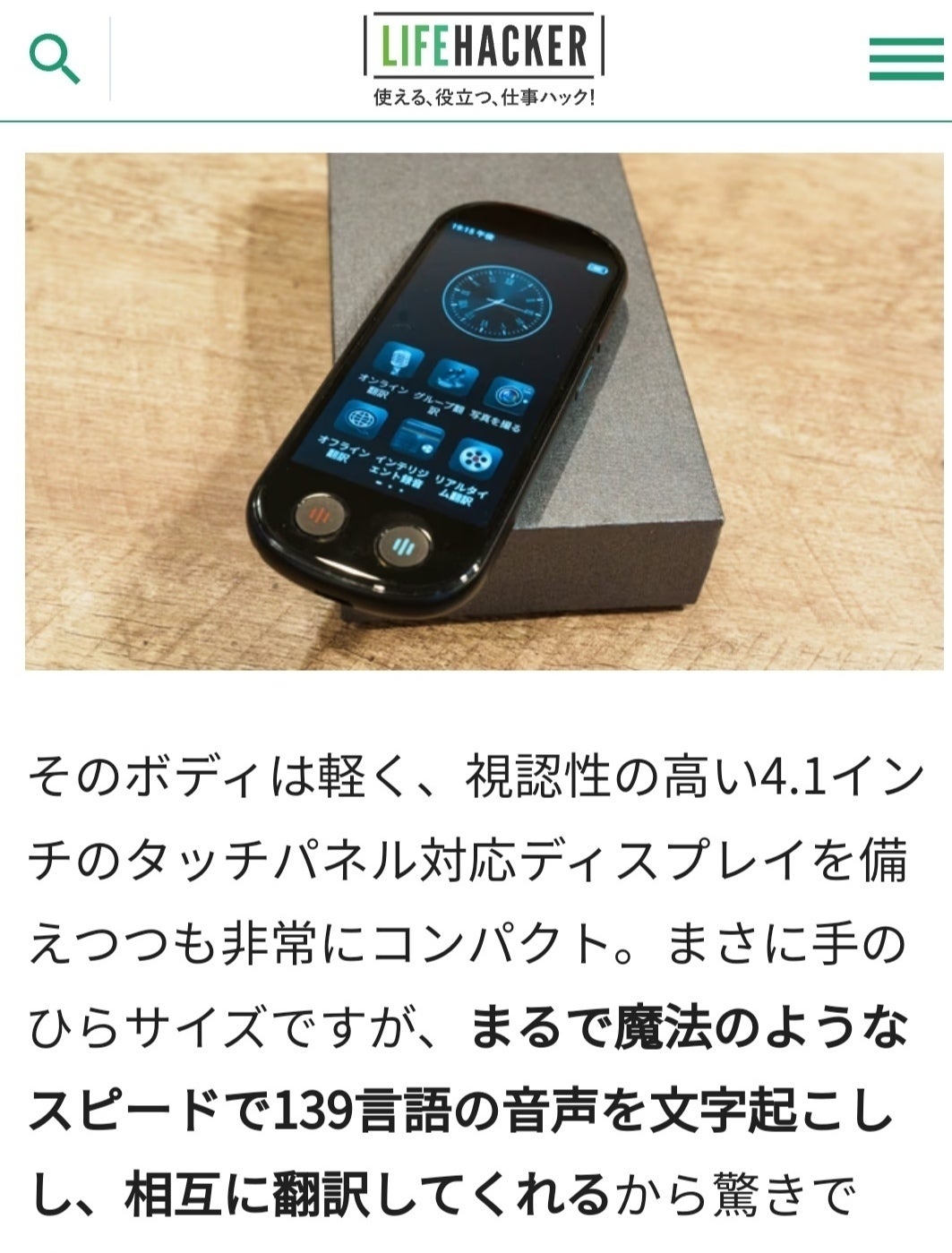 効率化だけではない、「新しい生き方の選択肢」を提案し、生活術や仕事術をはじめとした「ライフハック」と呼ばれる情報を主に紹介する大人気ウェブメディア、「Lifehacker」様から、今回『2回目』のVORMORスマート翻訳機の特集記事を公開していただきました!!