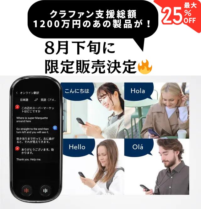 最先端のAI技術を搭載し、最大150言語を瞬時に双方向翻訳、さらに音声をクリアに文字起こし&自動保存できるスマート翻訳機「VORMOR T9」が、2025年7月4日(金)より、CoSTORY、ヨドバシカメラにて一般販売開始となります。https://costory.jp/cf-published-sku-groups/1165591607▼製品の特長150言語に対応:オンラインで150言語、オフラインでも21言語の音声翻訳が可能高精度AI音声認識:最短0.5秒で音声を認識し、**翻訳精度98%**を実現議事録級の文字保存:会話内容と翻訳結果を自動保存、後から簡単に読み返し可能ChatGPT連携:知りたいことやアイデアをAIが即座に回答OCRカメラ翻訳・グループ翻訳にも対応オフライン翻訳:インターネット環境がなくても安心▼販売店舗CoSTORY公式サイトヨドバシカメラ(新宿西口本店/マルチメディアAkiba/マルチメディア梅田 他)▼こんな方におすすめビジネスや観光で多言語コミュニケーションが必要な方訪日外国人対応を強化したい店舗・施設・事業者様高精度の議事録や記録が必要な現場スマホアプリでは不安な方、専用機で安心したい方これまでクラウドファンディングで累計1,300万円超の支援を集めた話題のT9が、ついに一般販売!ぜひこの機会に、最先端の多言語コミュニケーション体験をお試しください。※実機はヨドバシカメラ各店で体験可能です。※取扱店舗は今後も拡大予定です。▼詳細https://costory.jp/cf-published-sku-groups/1165591607