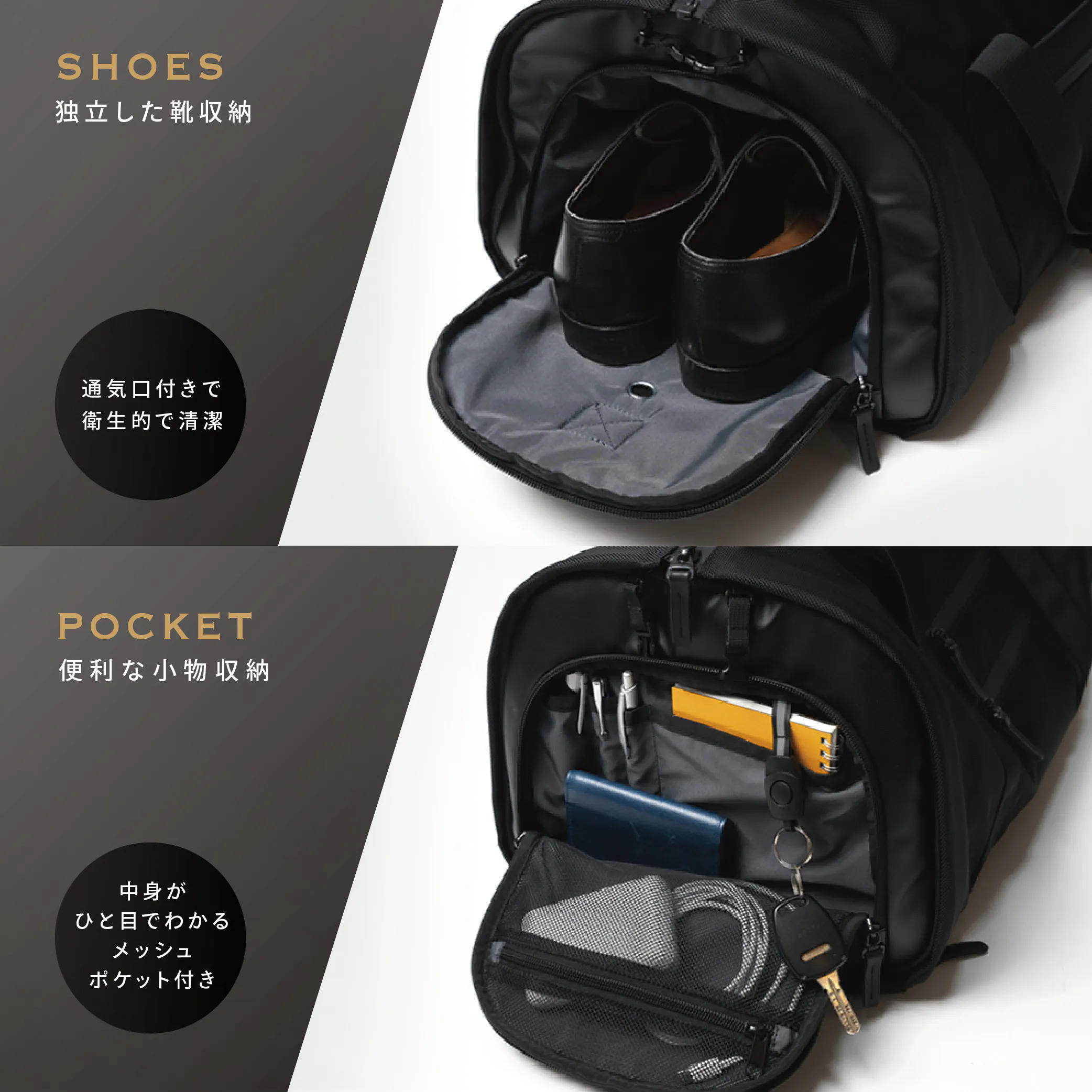 サイドに独立した靴収納スペースを確保。(リュック/縦持ちstyleの時は、靴収納部が下となります)