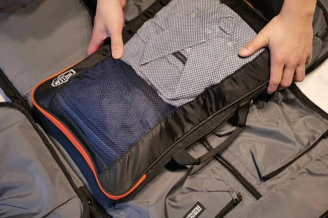 周囲のワイヤーでシワを防ぎつつ、かさばる衣類を圧縮してコンパクトに持ち運べる