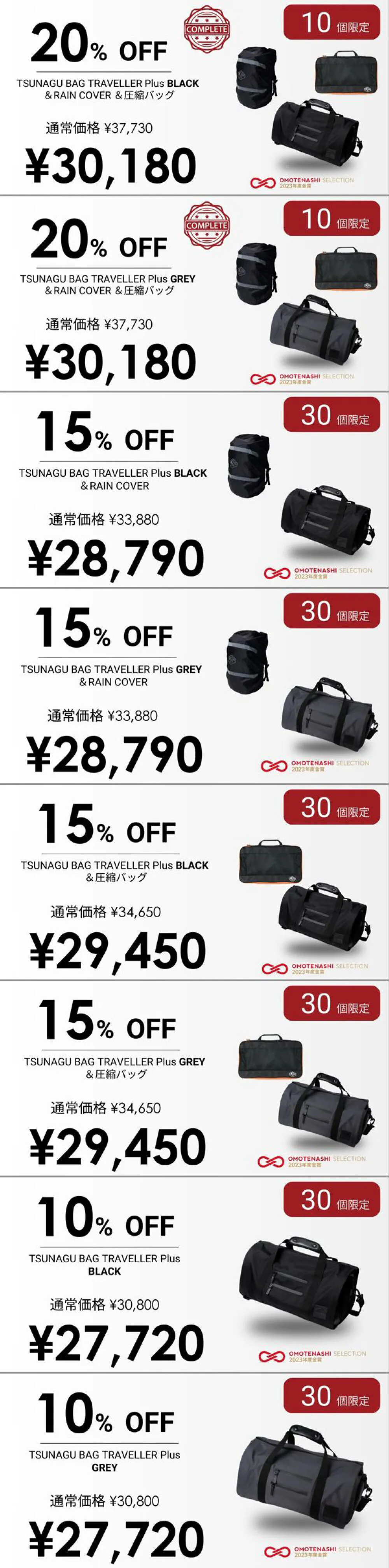 TSUNAGU BAG TRAVELLER PlusにぴったりサイズなLサイズとのセットです。