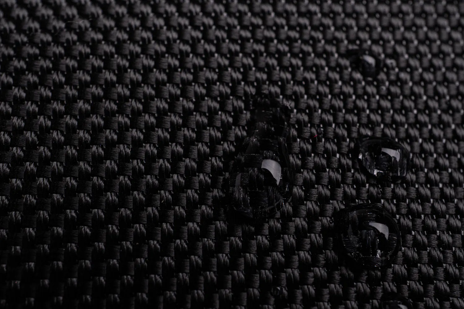 リサイクルペットボトルのポリエステルを、頑丈で高級感ある1680Dに編んだポリエステル生地を採用。