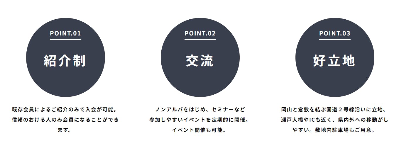 既存会員によるご紹介のみで入会が可能。信頼のおける人のみ会員になることができます。