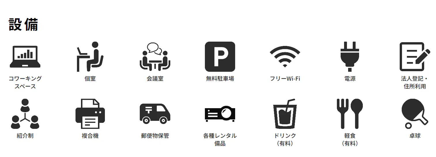その他にも一般的なコワーキングスペースにある基本的な機能をご用意しております。