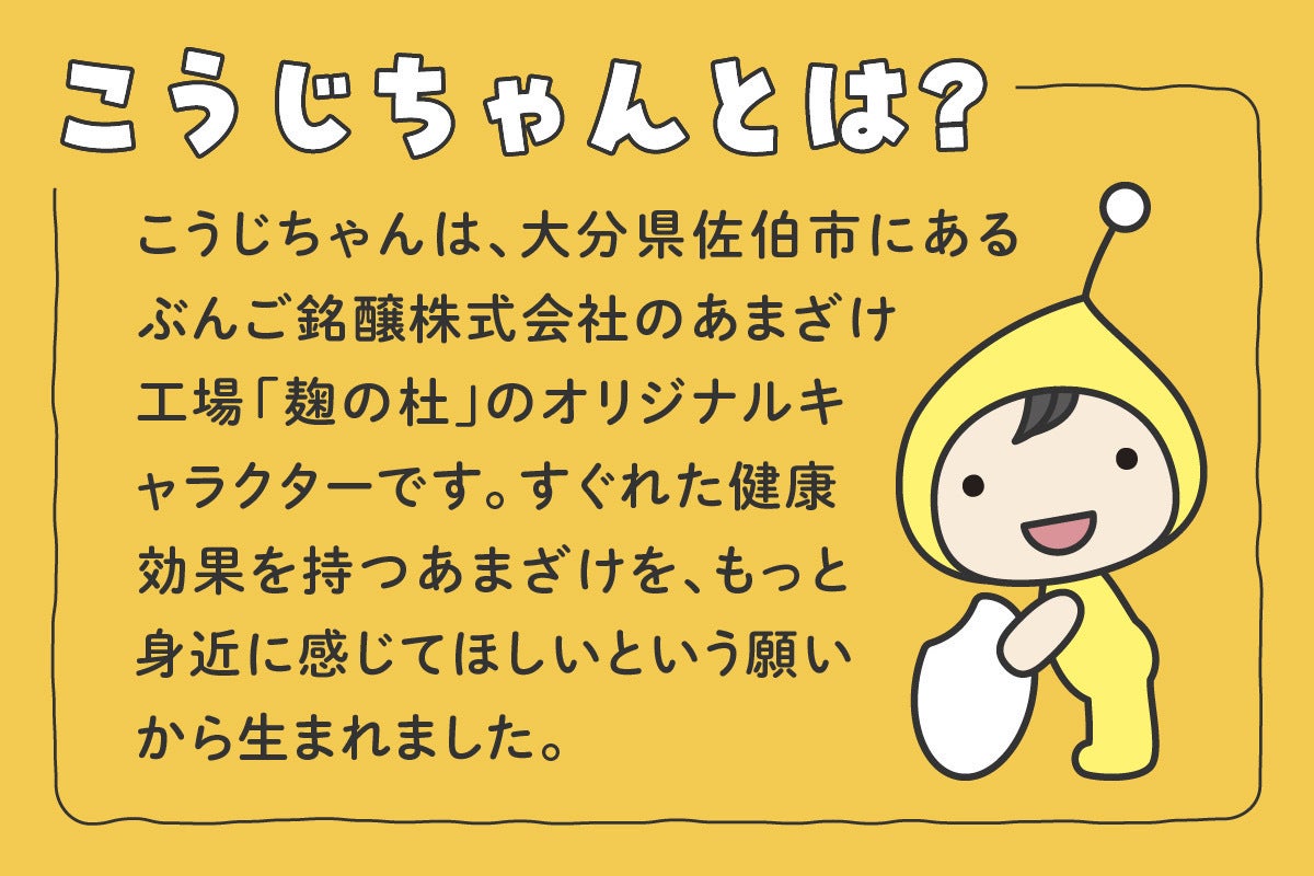 麹をもっと身近にお子様から大人まで幅広い方々に知ってもらう懸け橋に「こうじちゃん」というマスコットが誕生しました。