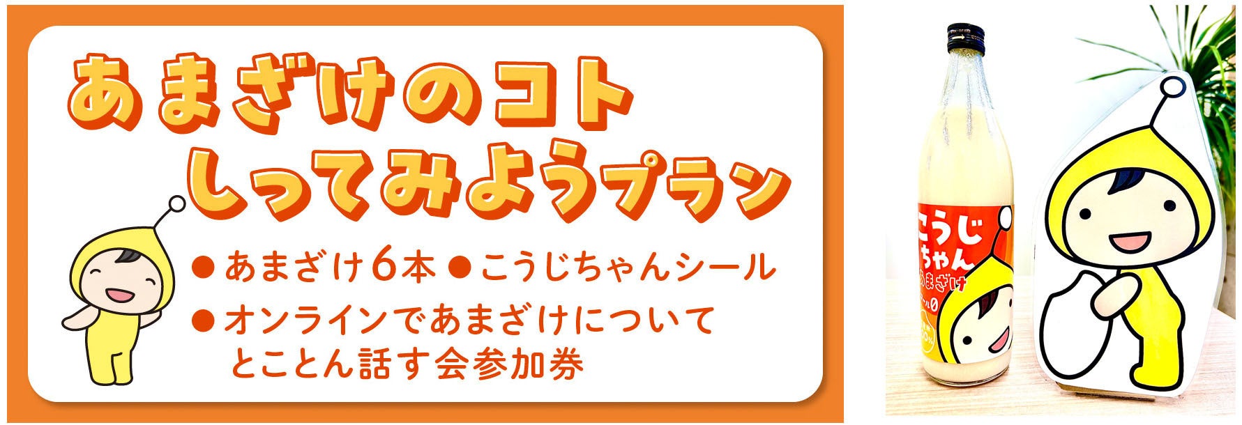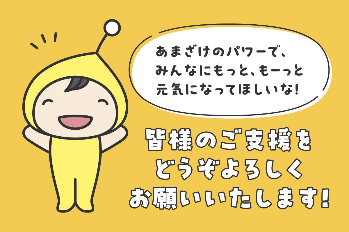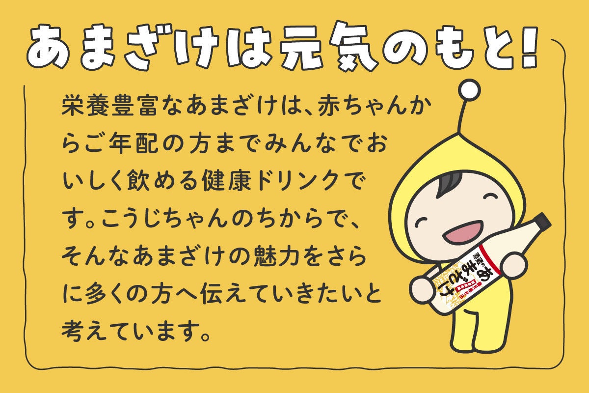「麹の杜」の公式キャラクターであるこうじちゃんを通じて、私たちの造っている美味しくて体によい米麹のあまざけをもっともーっといろんな方に飲んでもらいたい、麹のすばらしさを知ってもらいたいという熱い思いからこのプロジェクトを立ち上げました。