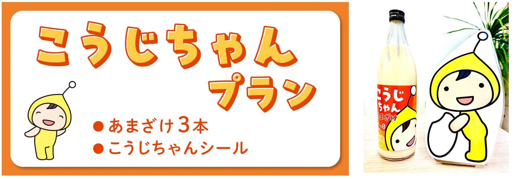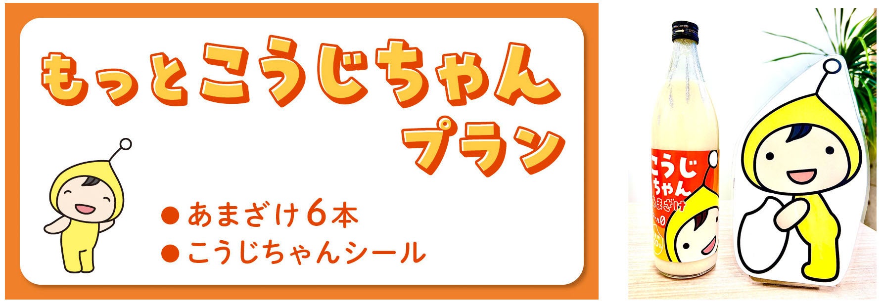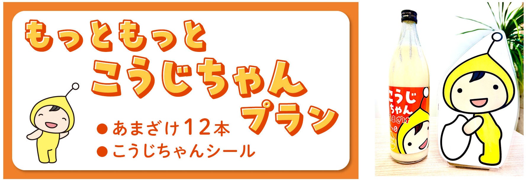「麹の杜」の公式キャラクターであるこうじちゃんを通じて、私たちの造っている美味しくて体によい米麹のあまざけをもっともーっといろんな方に飲んでもらいたい、麹のすばらしさを知ってもらいたいという熱い思いからこのプロジェクトを立ち上げました。