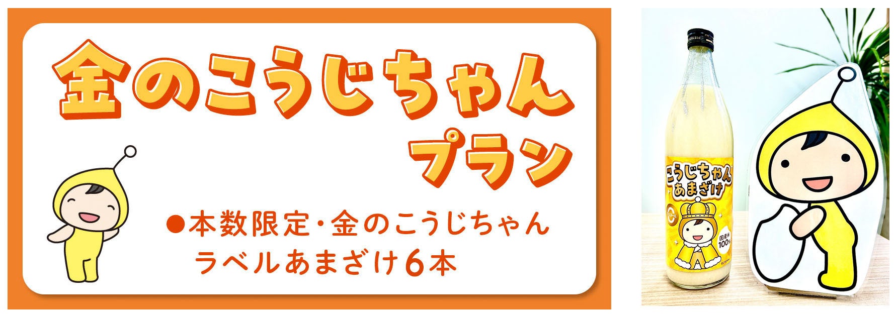 本数限定で金のこうじちゃんラベルのあまざけを6本お届けいたします。