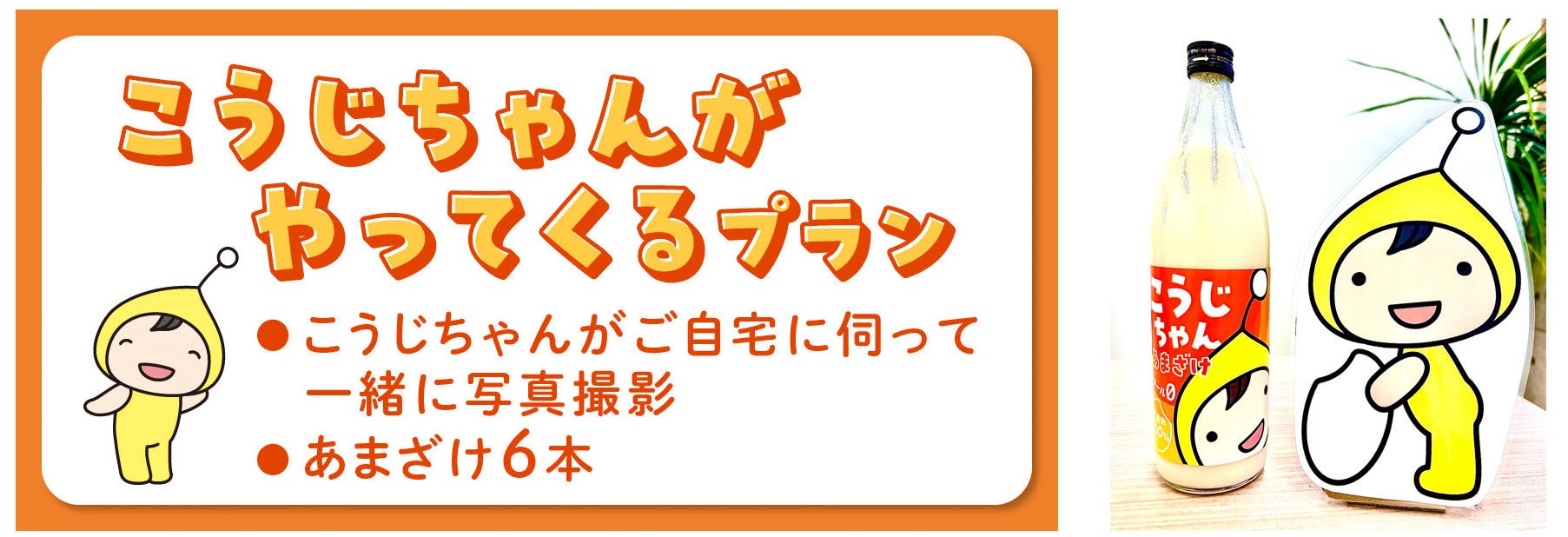 こうじちゃんがあまざけを持ってご自宅に行き、一緒に写真撮影ができます。