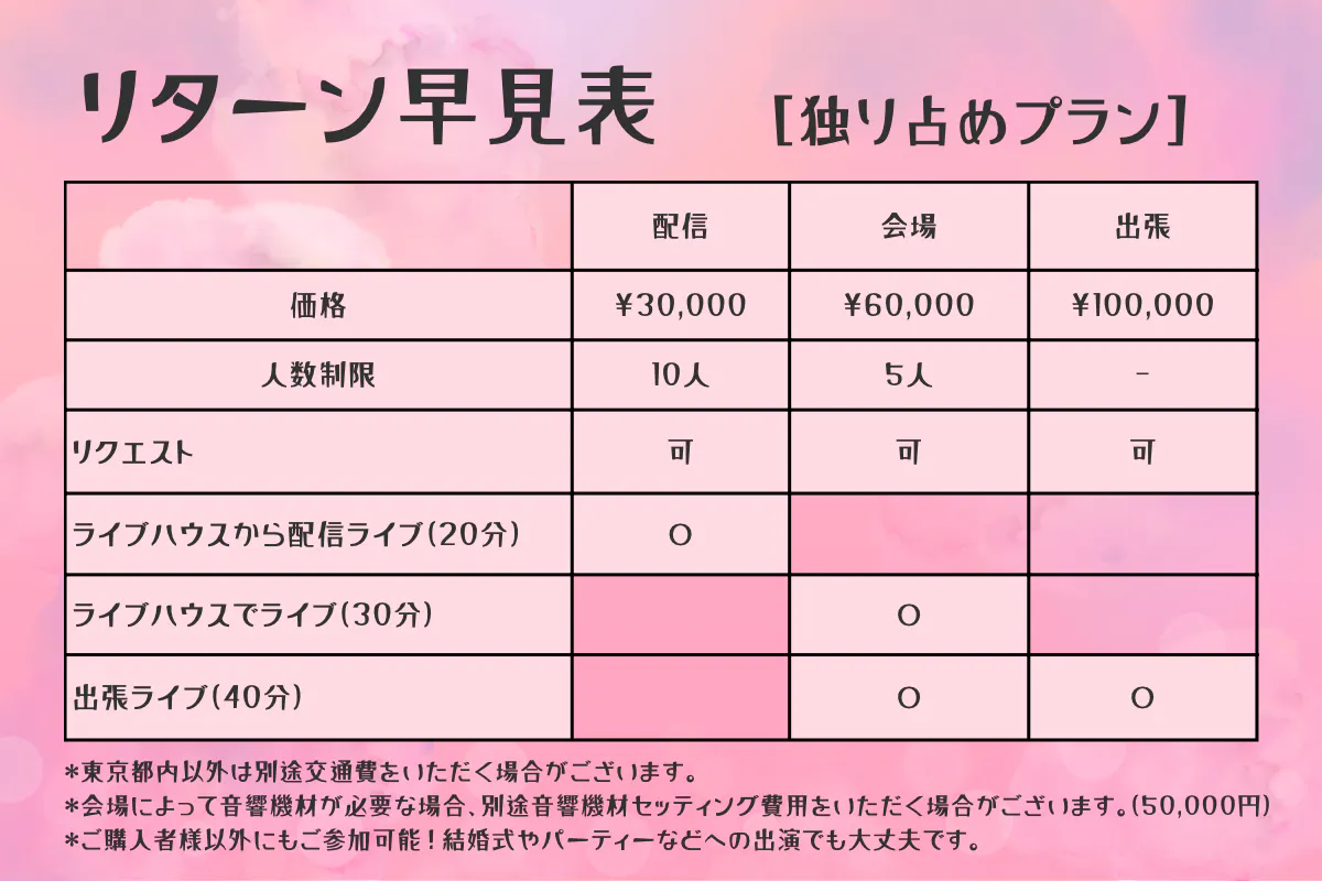 ▪︎30,000円[独り占めプラン〜配信編〜](10人限定)