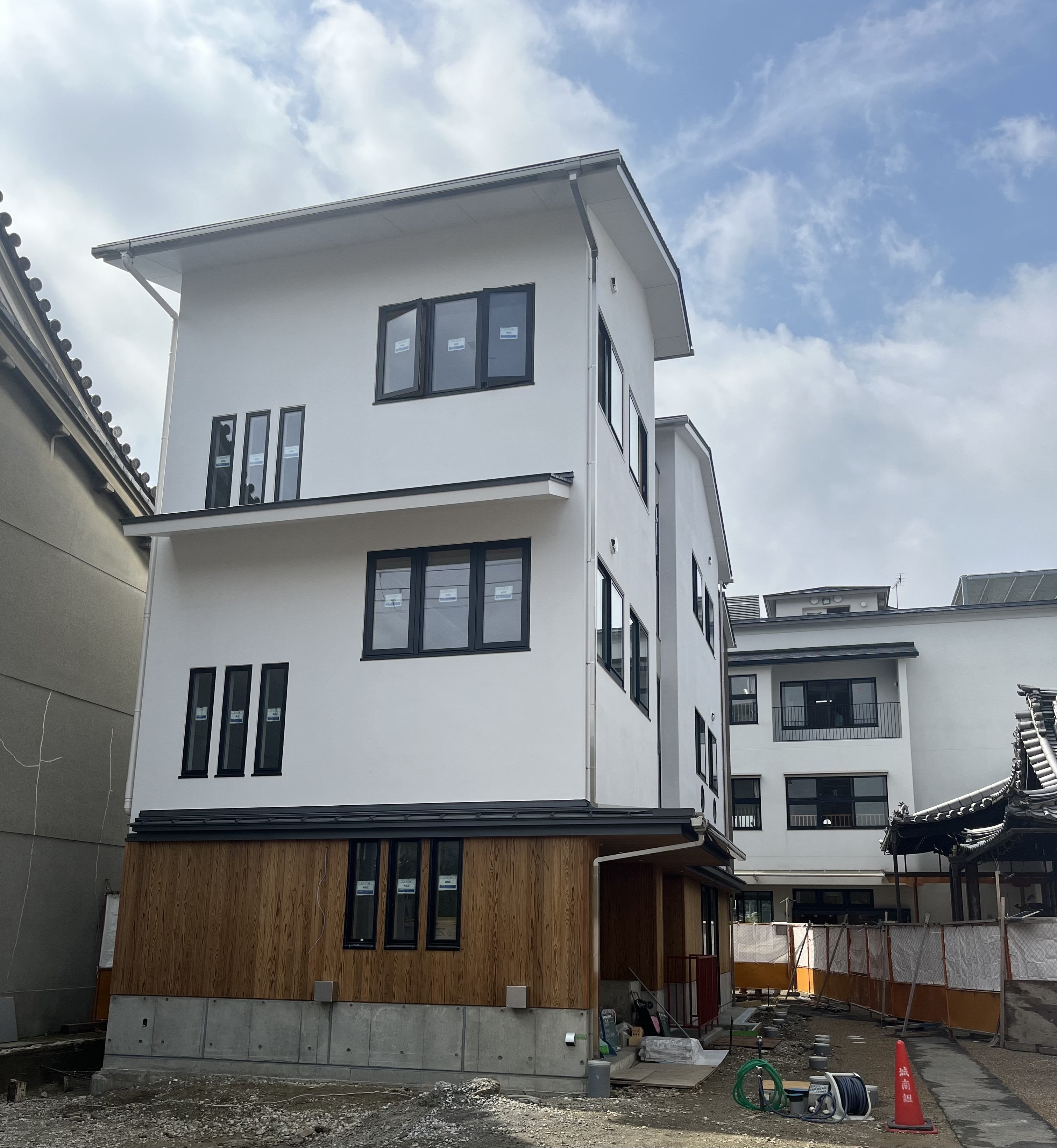 8月からの鐘撞堂・山門復建工事に先行して『六満こどもの家・洛中児童館』の合築工事も順調に進んでいます。