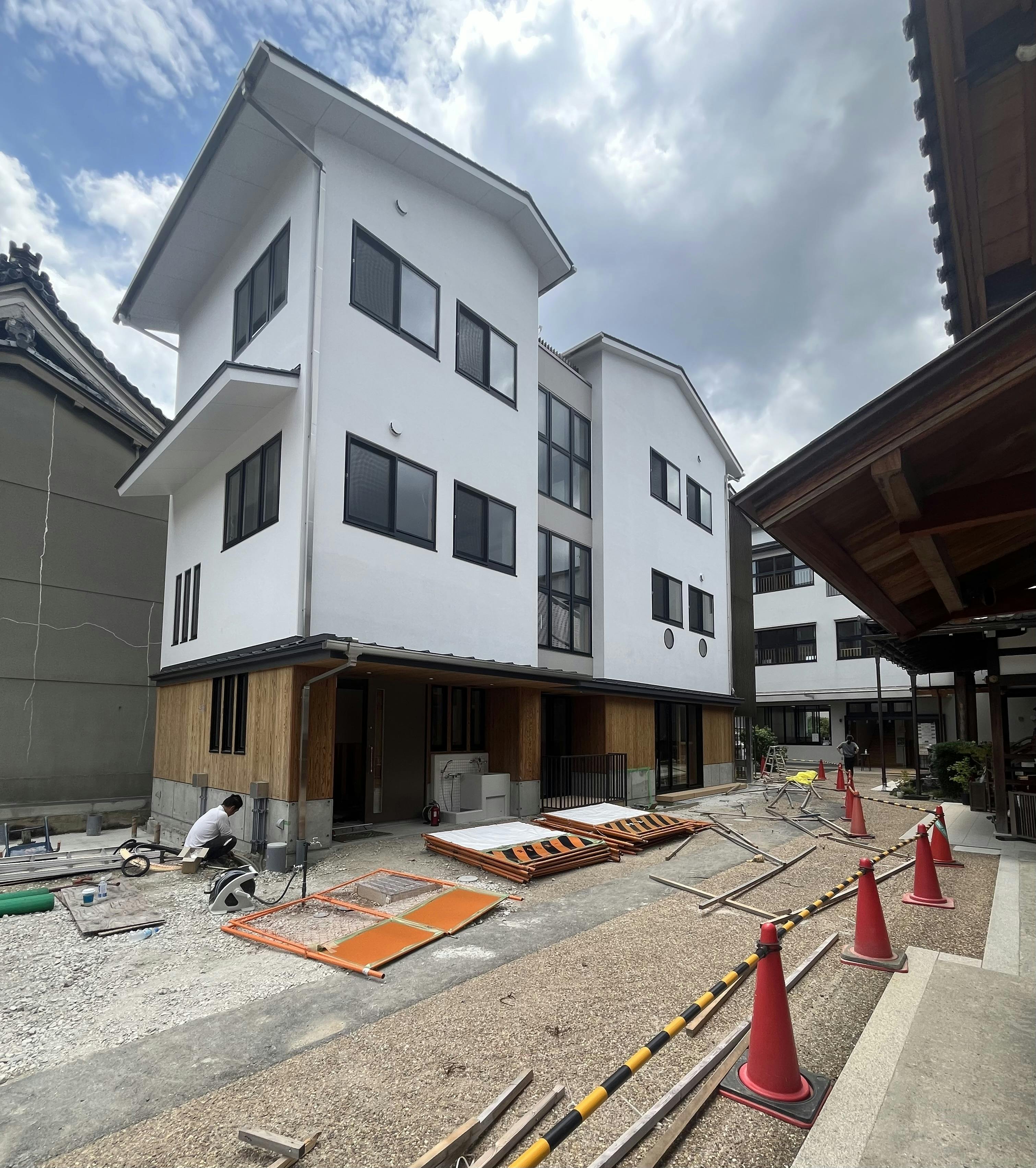 先週、六満こどもの家・洛中児童館合築建替工事で園舎を囲っていたゲージが一部取り外されました。