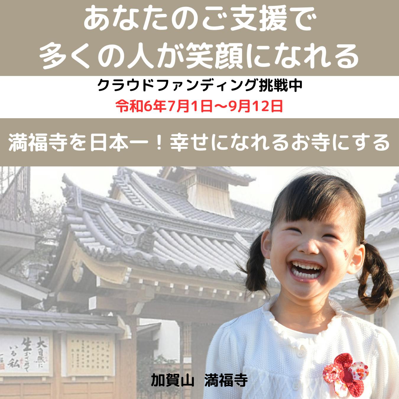 7月1日から9月13日までの期間で「満福寺を日本一幸せになれるお寺にする」を目標に掲げてクラウドファンディングに挑戦中です。