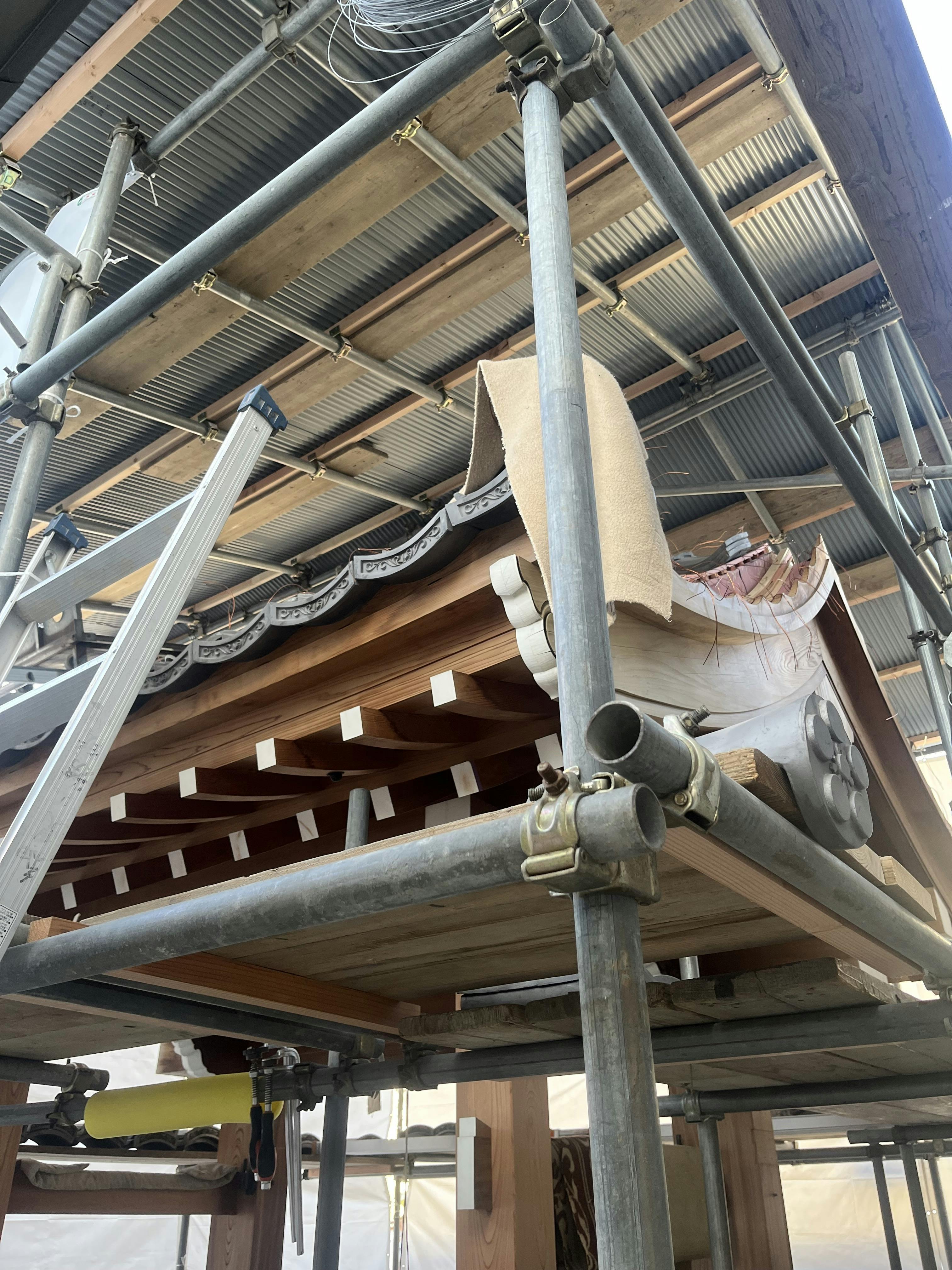 微妙に湾曲している山門に瓦を葺く技術はさすが職人さんだなと驚きです。瓦が葺かれると、さらに山門らしくなりますね。山門は2月頃に完成する予定になっています。