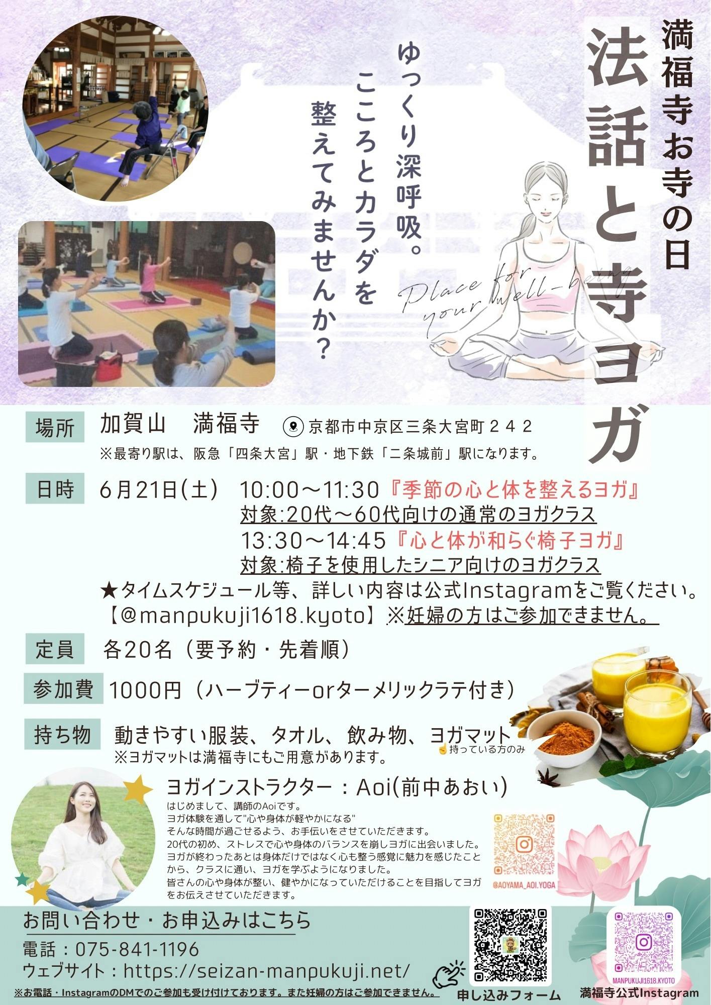 どなたでもご参加いただけます。まだまだ参加、間に合います。お寺でココロと体をリフレッシュしてもらえると嬉しいです。