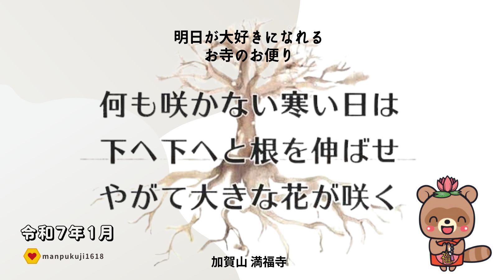 こんにちは。満福寺の住職。六満こどもの家(夜間保育園)の園長をしています。内海秀乗です。いつも温かい応援の言葉に感謝しております。ありがとうございます。山門復建工事ですが、順調に山門の屋根瓦を葺く工程に進んでいます。涅槃会(ねはんえ)とは!?2月15日は、お釈迦様が涅槃に入られた涅槃会です。涅槃会(ねはんえ)とは、2月の仏事のことを言います。花まつり(降誕会)や成道会と並ぶ、仏教の三大行事のひとつでもあります。4月8日の花まつりがお釈迦様が誕生した日で、12月8日の成道会は悟りをひらいた日、そして2月15日の涅槃会が亡くなられた日とされ、それぞれの日に仏教の年中行事が営まれています。また、涅槃(ねはん)とは、サンスクリット語で「ニルヴァーナ」と言って、「ロウソクの火を吹き消す」という意味があるように、仏教の理想である怒り・妬みなどの様々な欲が消滅し、心の迷いがなくなった安らぎの境地に至る状態のことを言います。話はすこしわき道にそれますが・・・私事ではございますが、2月16日(日曜日)に人生初のフルマラソンになる「京都マラソン」に挑戦いたします。まだ20キロ以上走った経験がないので不安の方が大きいですが、最後まで楽しみながら完走できたらと思っております。高橋尚子選手の座右の銘『何も咲かない寒い日は、下へ下へと根を伸ばせ』この言葉は、元マラソン選手である高橋尚子さんが恩師から贈られた言葉で、座右の銘にしておられる言葉になります。高橋選手の練習量はマラソン選手の中でも群を抜いていることで有名です。マラソンの大会に出場するにあたって、他とは群を抜く距離を走ってきたからこそ、金メダルを取ったときに「たったの42.195kmでした」と言われたのだと思います。このように輝かしい活躍をされている高橋選手ですが、高校時代は駅伝の岐阜県代表に選ばれるのがやっとの選手で、全国大会の本番では9人に抜かれ、区間順位は全国で下から3番目の45位。社会人になってからマラソンに転向されましたが、3年間はまったく芽が出ず苦しい日を多く経験されながらも、この言葉を胸に諦めることなく一歩一歩走り続けてこられた結果、笑顔で多くの方に元気を与えてくださる選手になられたのだと思います。高橋選手はテレビ番組やインタビューで座右の銘を聞かれると、必ずこの恩師から贈られた言葉をこたえられるそうです。自灯明・法灯明お釈迦様が涅槃に入られる際、「お弟子様がお釈迦様がいなくなったあと何を頼りに生きていけばいいのですか?」との問いに「自灯明・法灯明」という言葉を残されました。これは、お釈迦様が亡くなった後、色々なことに迷い・苦しんでいるときこそ「自らをともしびとしなさい。お釈迦様の教えをともしびとしなさい」ということであり、つまり「苦しくて迷ったときこそ仏教の教えを参考にして、自分は成長できると信じて、諦めずに前に進みなさい」ということなのだと私は思います。立派な木に成長するには目に見えない根の部分をしっかり成長させることが大事になる。しかし、成長が目に見えないときは辛く苦しいと諦めたいと感じることが多いが、そんなときだからこそ「自分を信じて目の前のことを大切にして一歩一歩前に進むことができればいつか大きな花を咲かせることができるのだ」とお釈迦様は私たちに教えてくださっているのだと思います。2月のお寺の日には涅槃図の前で皆さまとお勤めをします。ぜひ賑々しくお参り下さい。★2月お寺の日のご案内★令和7年2月21日(金) 13:30~ 於:満福寺・13:30~   涅槃会法要   ・14:00~   住職法話  ・14:30頃   終了予定どなたでもご参加していただけます。たくさんお参りにきていただけると嬉しいです。