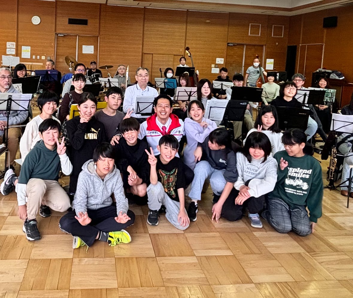 定期演奏会に向けて吹奏楽団さんと一緒に「吉川の歌」の練習をしました。