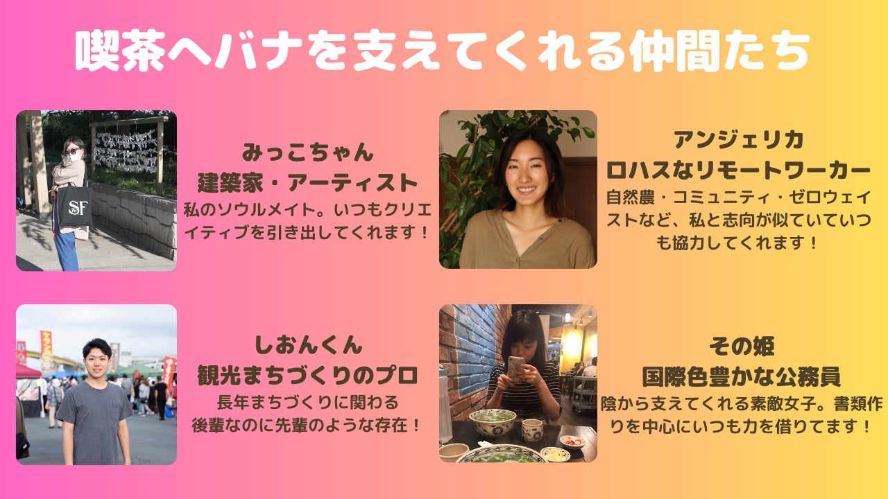 そんなことを皆様に体感いただける場所として、「喫茶へバナ」を一緒に作っていければと思っております。