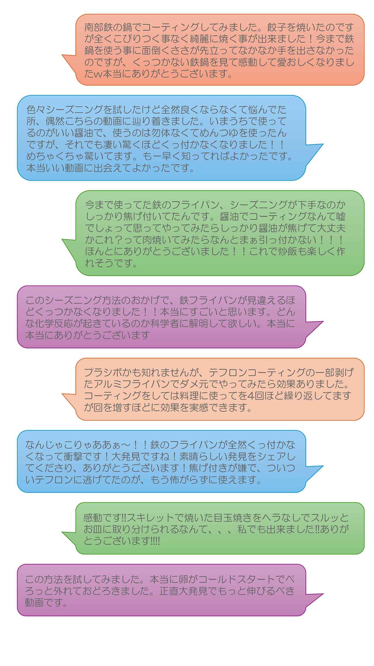 くっつき始めた各種フライパンも復活するとの報告も頂いております。