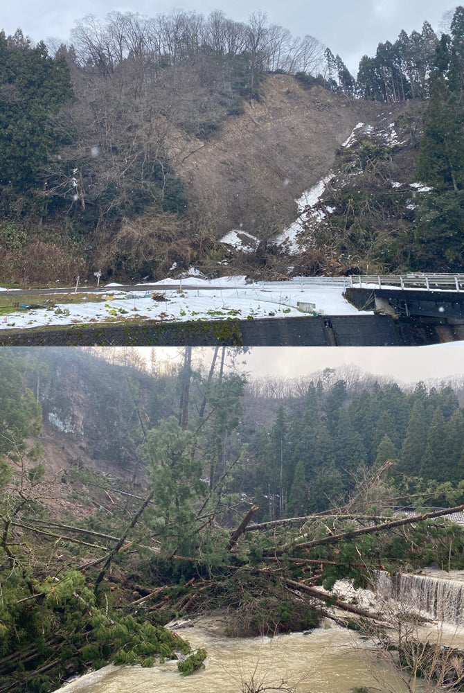 ですが地震後、店の損傷だけでなく、山が崩れて、川を塞いでしまった、、、