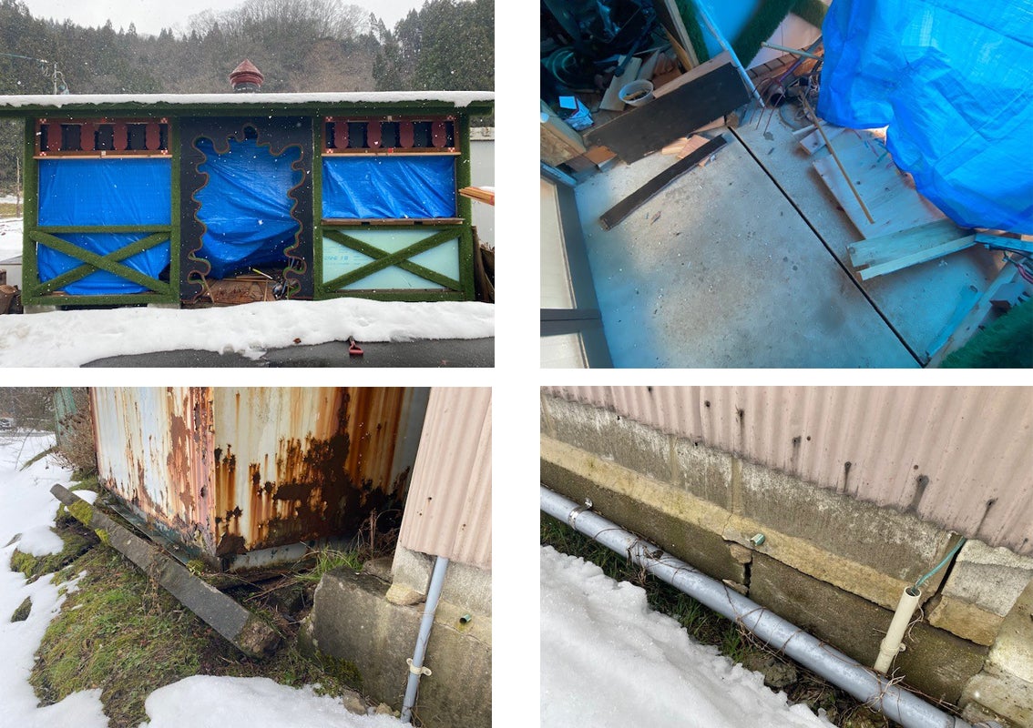 店は倒壊しなかったものの、地面の隆起、亀裂、基礎部分の破損、、