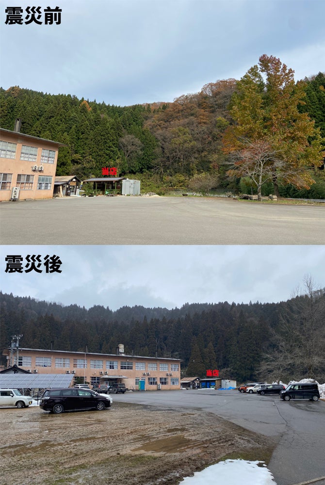 店は倒壊しなかったものの、地面の隆起、亀裂、基礎部分の破損、、