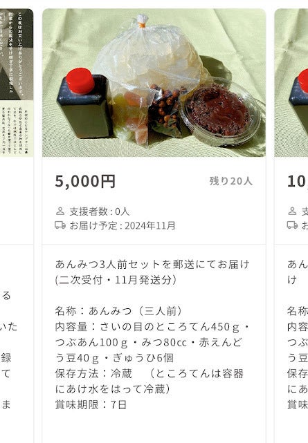 完売となっておりました¥5000の返礼品の【あんみつ3人前セット郵送】について