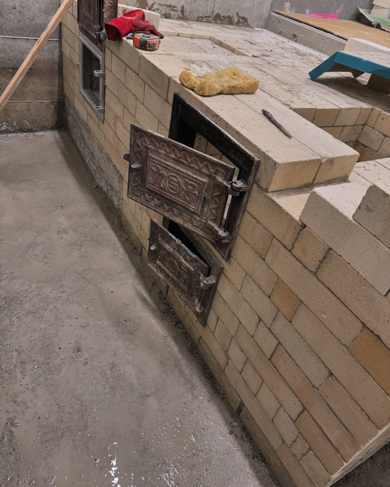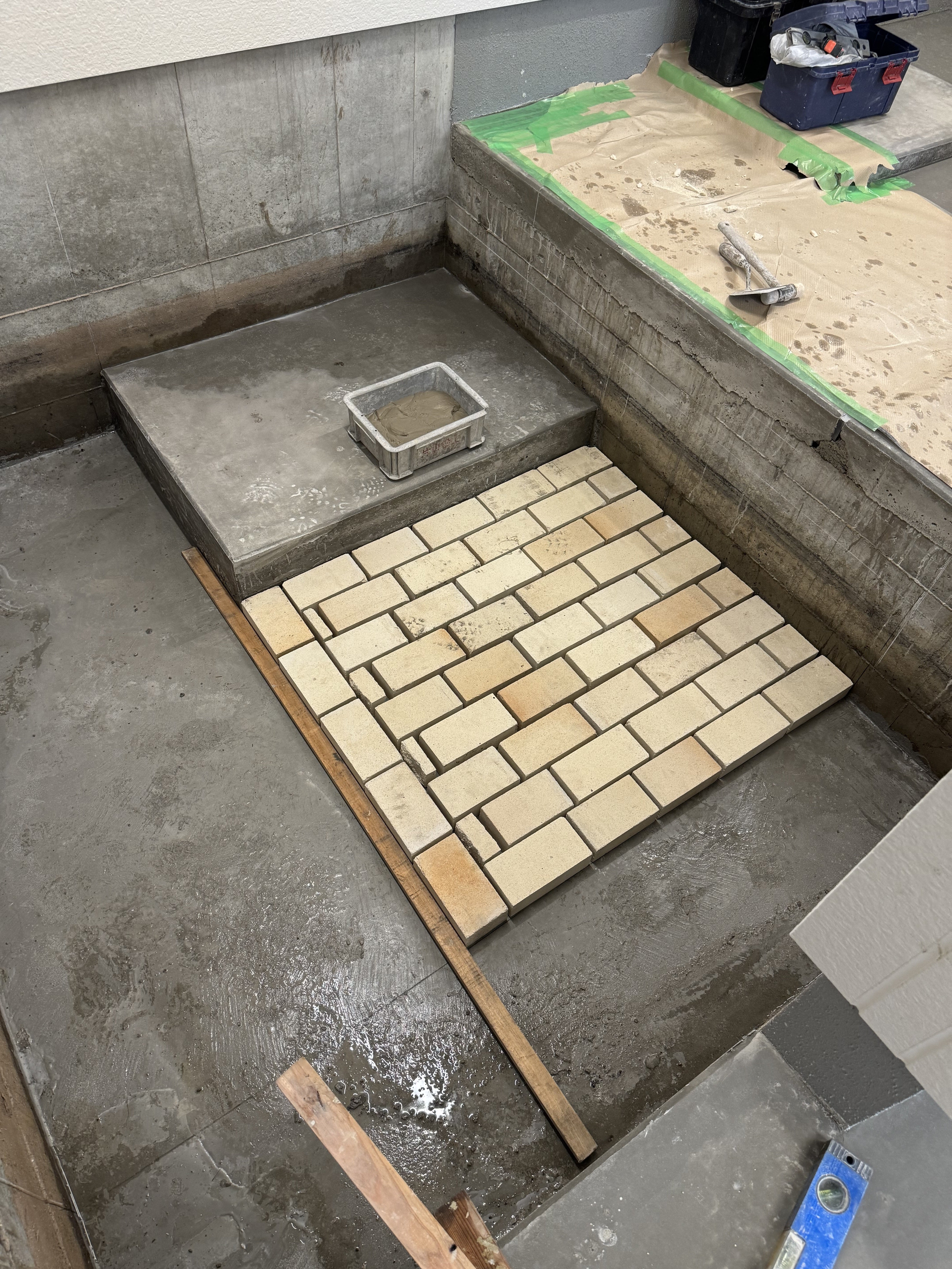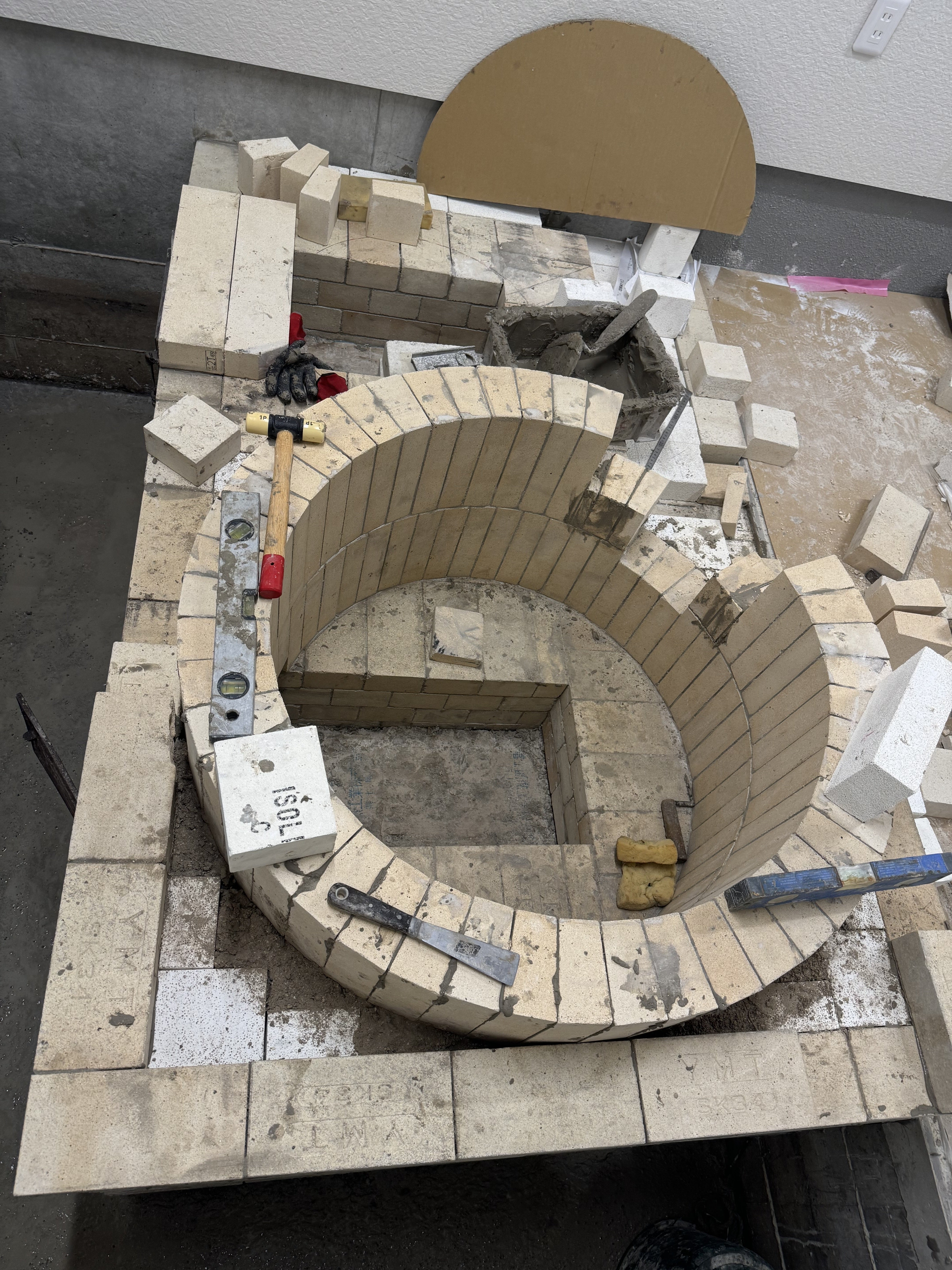 実際に作成に入ると予期しない出来事だったり、状況が発生する訳で。そこで、設計した方や現場監督さん、実際作業されている左官やさん、依頼主である私が話し合い釜戸づくりを進めています。問題を解決するだけでなく、より良いものにする為に手間のかかる工法に変える事なんかもしたので、もう1日かかる事になってしまいました。でも、納得のできるものが出来上がりそうです。