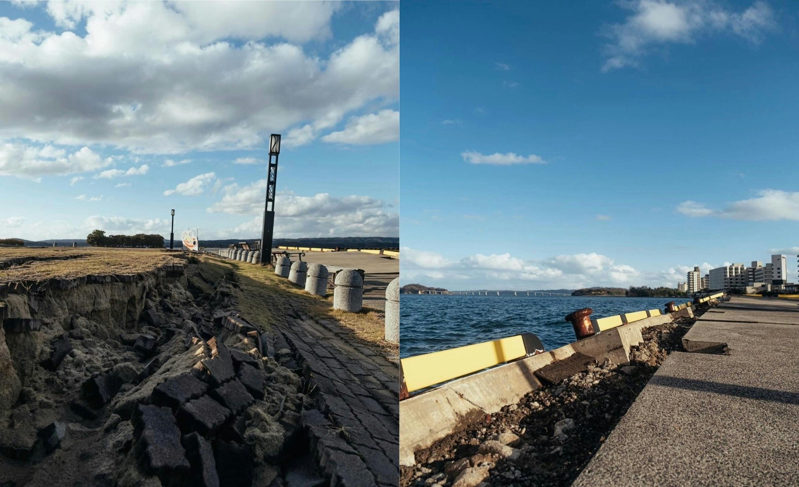 能登島にかかる橋は大きくひび割れ、住み慣れた町は建物の倒壊や地面の隆起、液状化など、昨日までの日常が嘘のようでした。