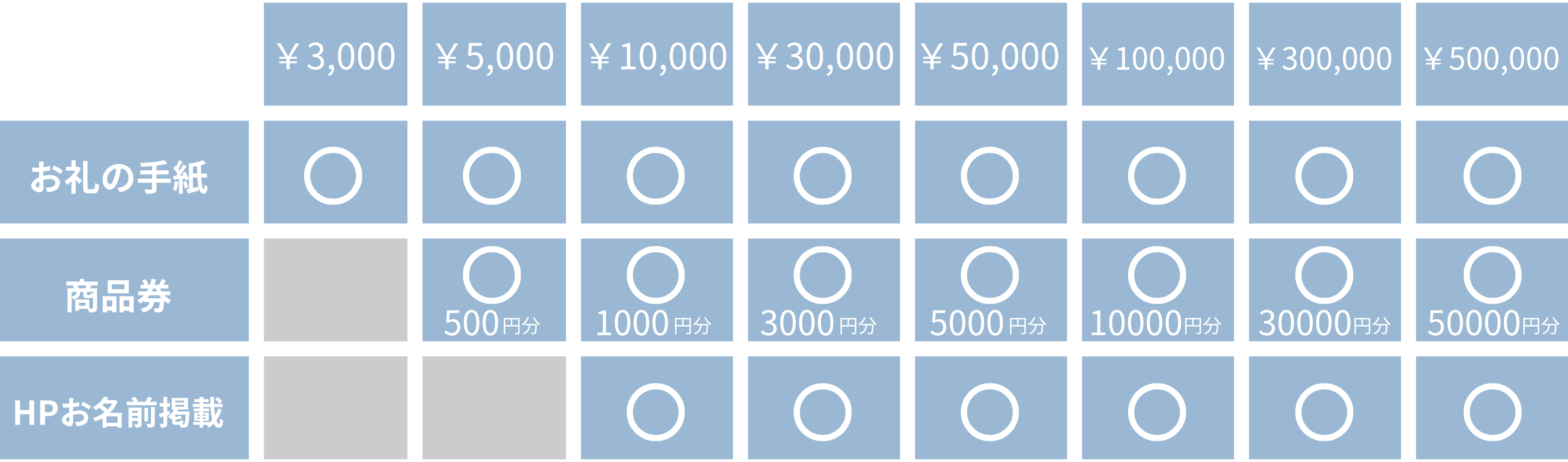 株式会社能登島マリンリゾートより、支援金額に応じて下記のものをリターンとしてお送りいたします。