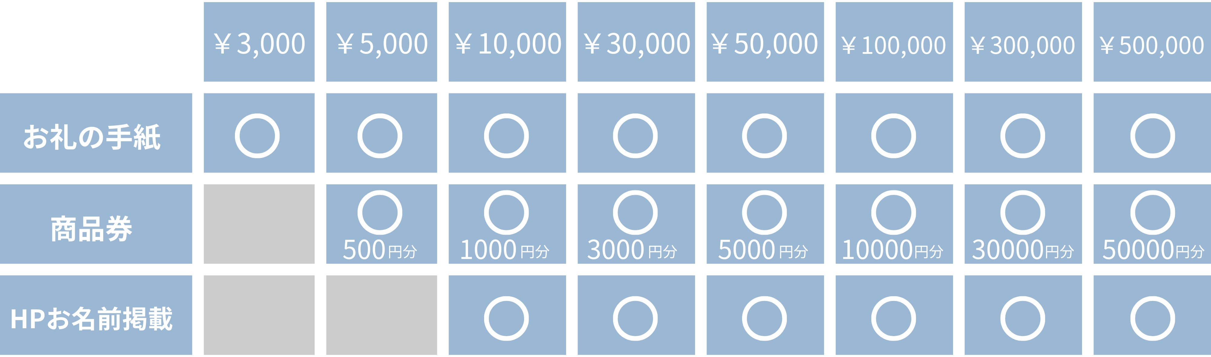 株式会社能登島マリンリゾートより、支援金額に応じて下記のものをリターンとしてお送りいたします。
