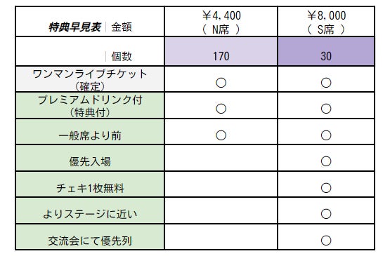 お席によって特典が変わります。