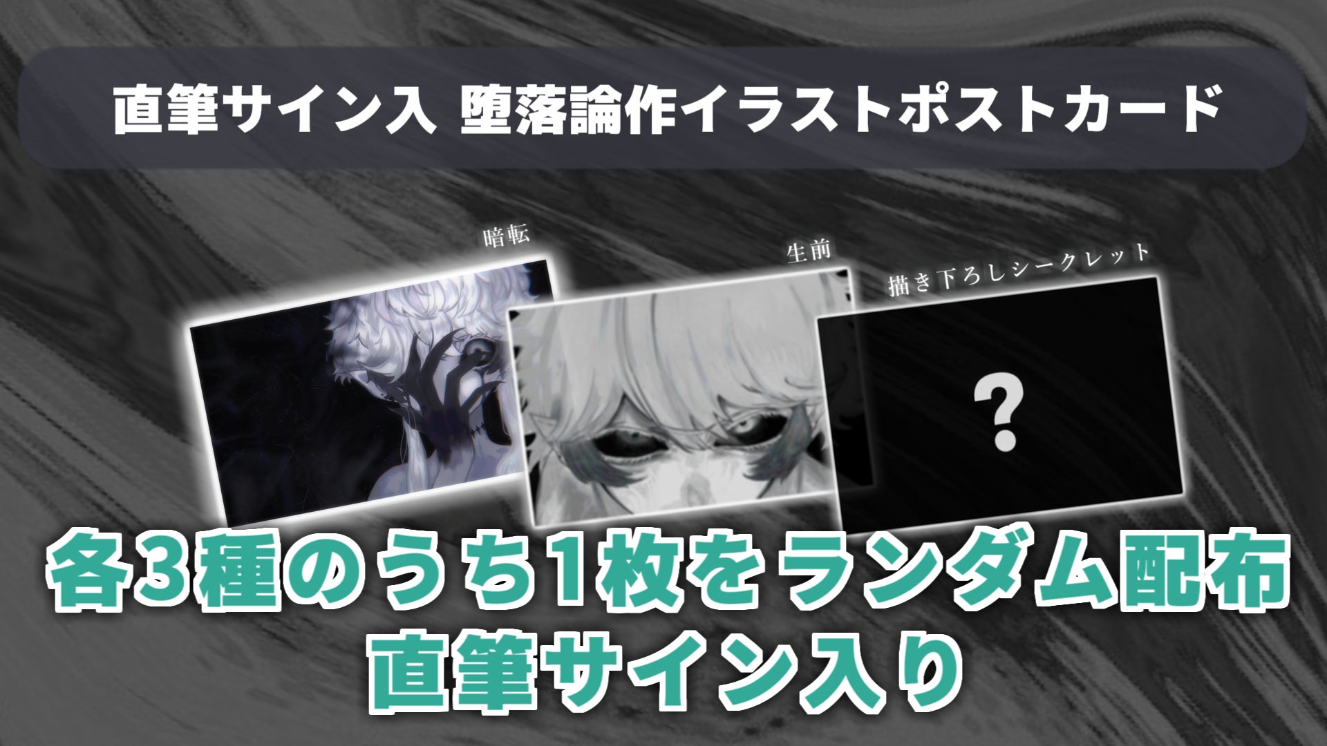➁直筆サイン入堕落論作イラストポストカード (※各3種ランダム)