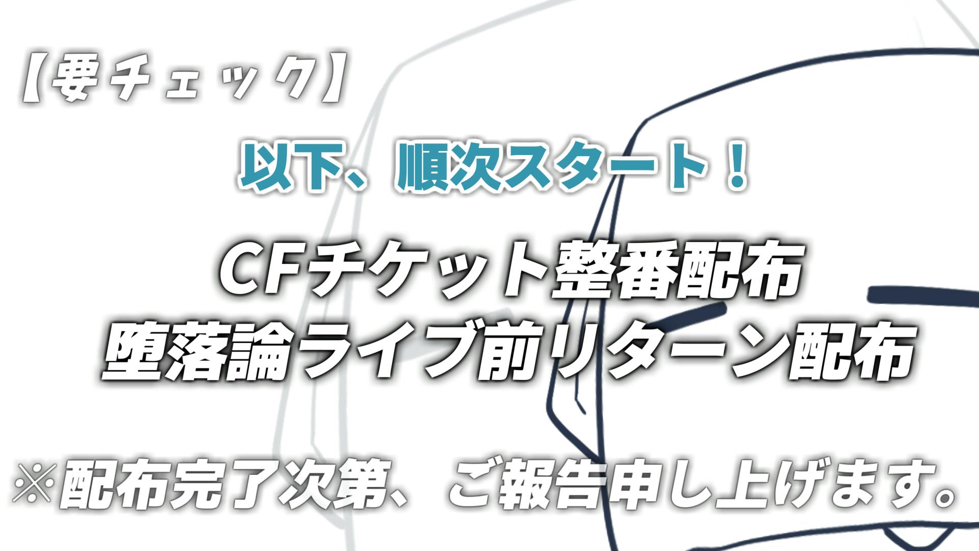 【順次スタート!】CFチケット整番配布、堕落論ライブ前リターン配布