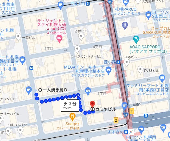 地下鉄すすきの駅から徒歩1分、地下鉄大通駅から徒歩6分、
