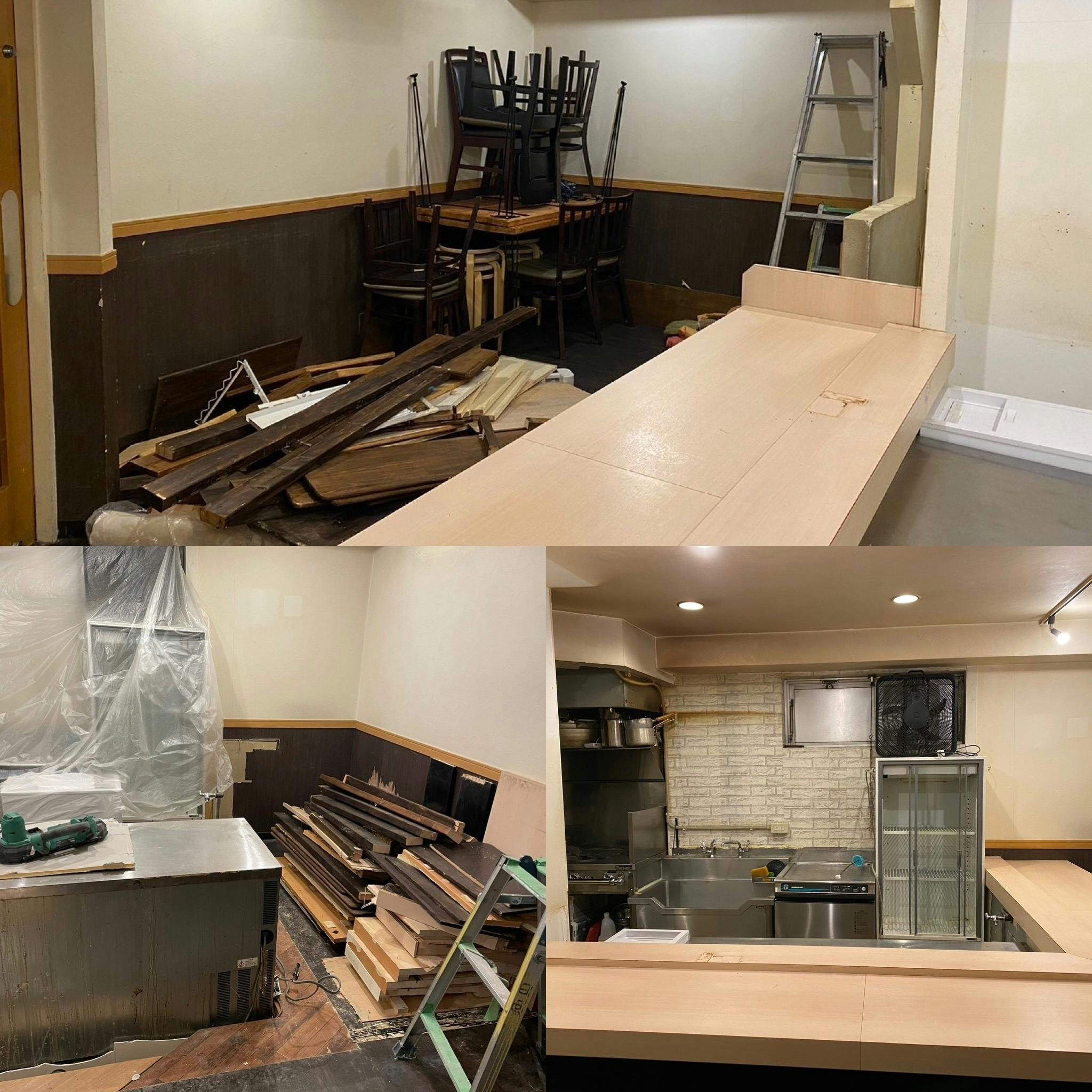 2024/03/19 11:213月1日から新店舗の内装工事が始まっています。以前の「一人焼き鳥B」の雰囲気を出すことも重要としていますが、せっかく少し広い店になったので、ゆったりと過ごせる空間も考えながら。店主も少し工事作業のお手伝いもしています。「一人焼き鳥B」の第2章がスタートしたんだなという実感しています。これも皆様にご支援していただいたり、励ましのお言葉をたくさん頂いたおかげだと、感謝の日々です。クラファン支援していただいた方にメッセージをお送りしています。クラファンチケットをスムーズにお渡しするために、フルネームをお聞きしていますので、まだメッセージを確認されていない方は確認の上、ご返信お願いします。お気持ち支援の方には、もしも来店された際には直接お礼をお伝えしたいです。支援いただいたことをお伝えいただけると幸いです。思いもよらないスピードで支援が集まり、驚いています。そして感謝しています。ありがとうございます。引き続き、プロジェクトの進捗や状況については、プロジェクトページの「活動報告」にて投稿していきます。ご確認いただけると幸いです。一人焼き鳥B 只野 知紀 もっと見る