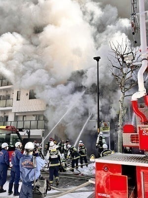 2024年1月19日午前9時半頃、ビル1階店舗で火災発生。
