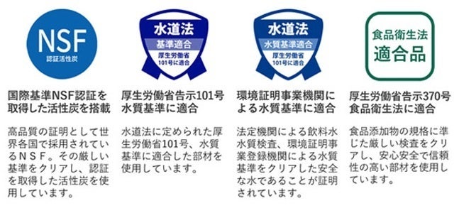 さらに、NSF認証をはじめ、国内・国外の適正な基準をクリアしています。