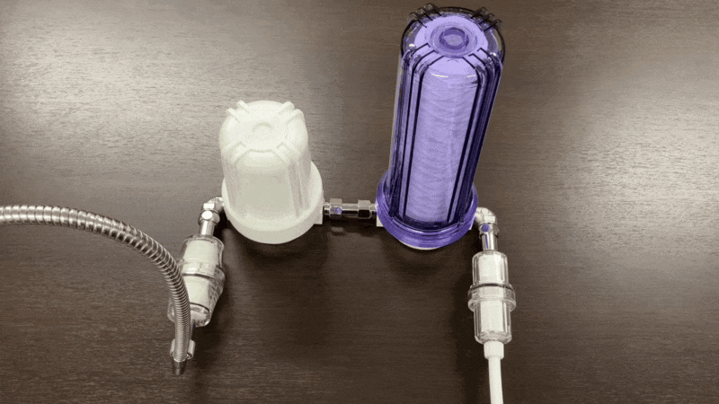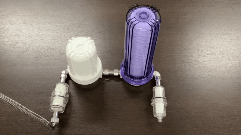 2. プレフィルターケースにホースを繋ぐ