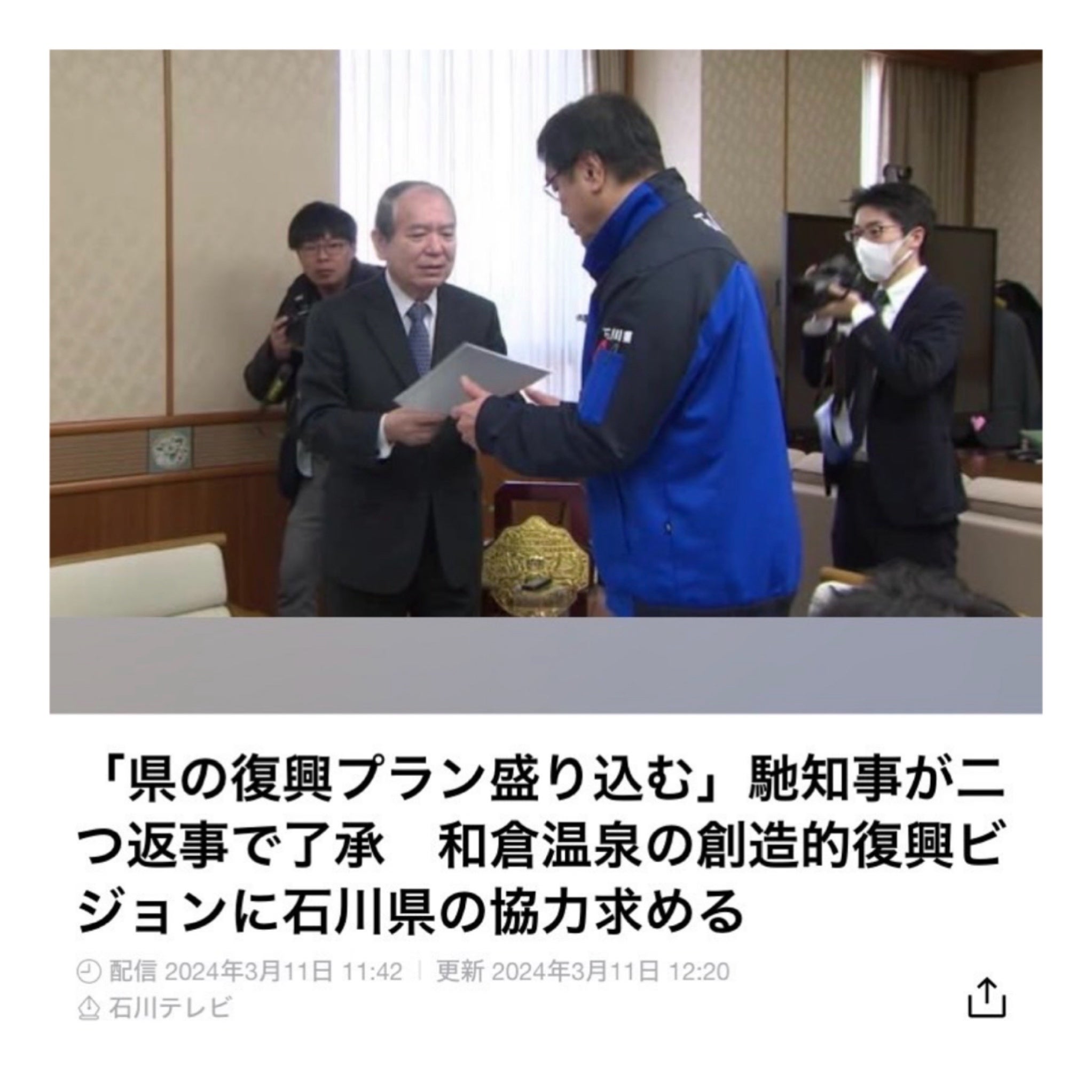 このページに辿り着いてくださり、ありがとうございます.ᐟ.ᐟ能登といえば和倉温泉〜加賀屋は日本一の温泉として有名です。そんな和倉も今回の地震で被害が大きく出ました。今後、復興を速やかに行うには宿泊施設が必須となります。今もなお奥能登では断水が続いております。そんな中で出た和倉温泉の記事です。2040年を目標としています。大きな宿泊施設が復興するには沢山の費用が掛かります。また10年以上の年月を有する事もあります。小さな宿泊施設は泊まれる人数は少なくとも、規模が小さい分建て直しがスムーズに行えます。これから本格化していく復興の為、宿泊施設が必要です。奥能登入りされた方々は口を揃えて伝えてくださります。ご支援シェア拡散ご協力を宜しくお願い申し上げます.ᐟ.ᐟ